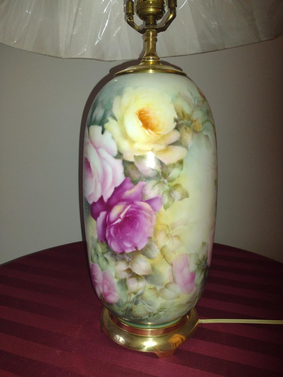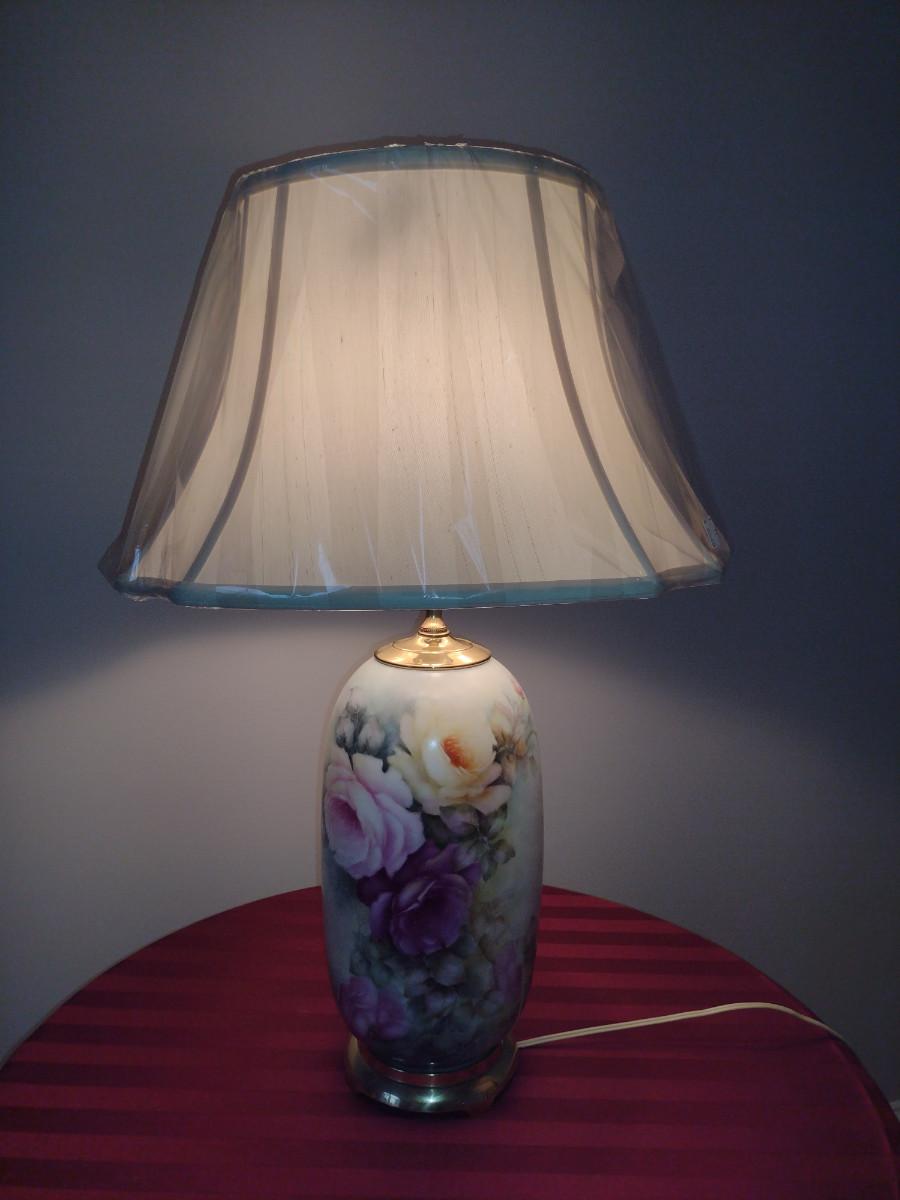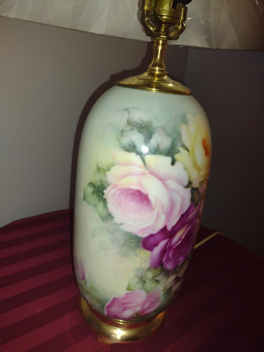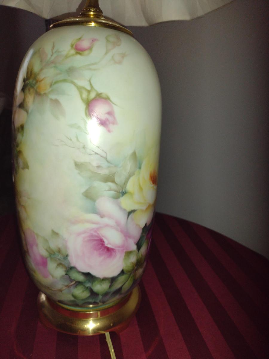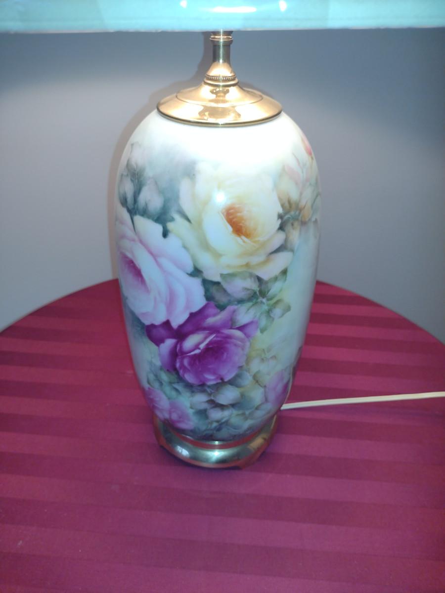 Hand Painted Floral Rose Design Ceramic Lamp with Shade- Approx 27 1/4" Tall