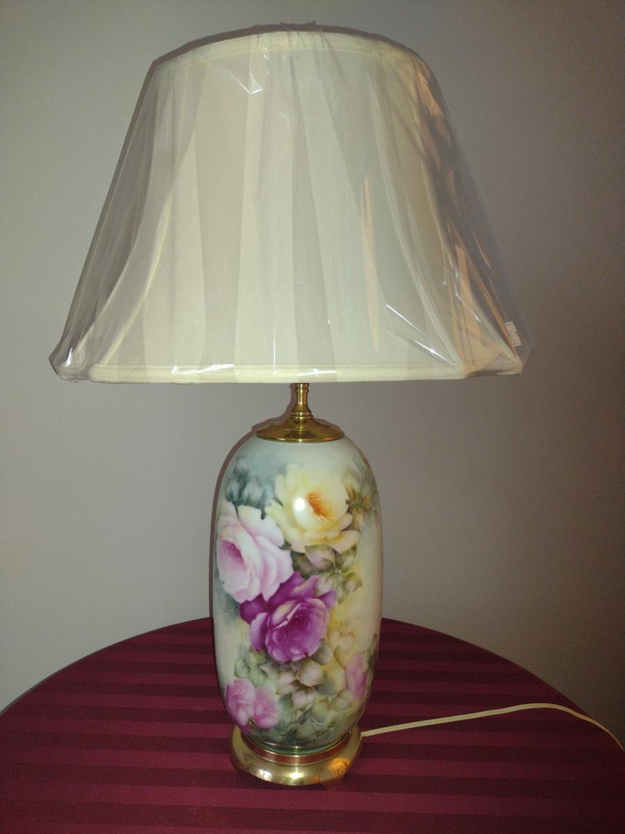 Hand Painted Floral Rose Design Ceramic Lamp with Shade- Approx 27 1/4" Tall. Shade appears to be new.