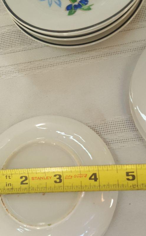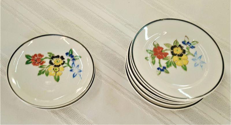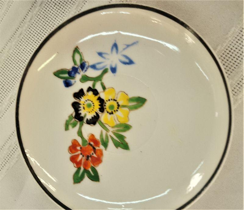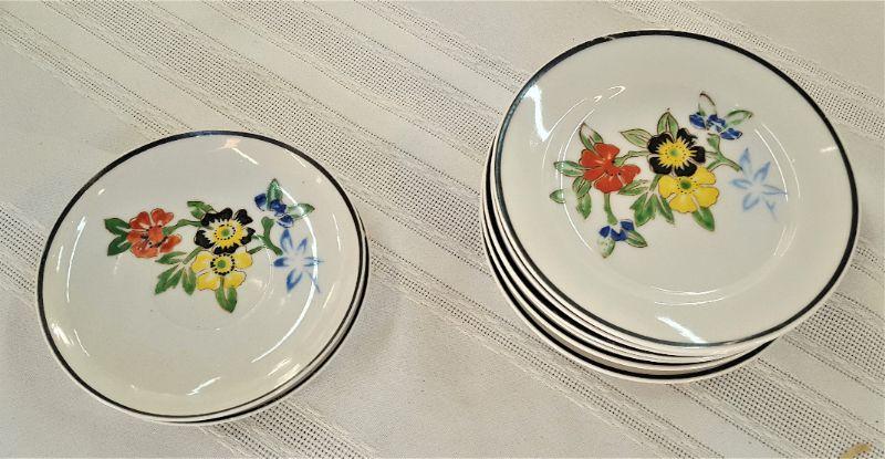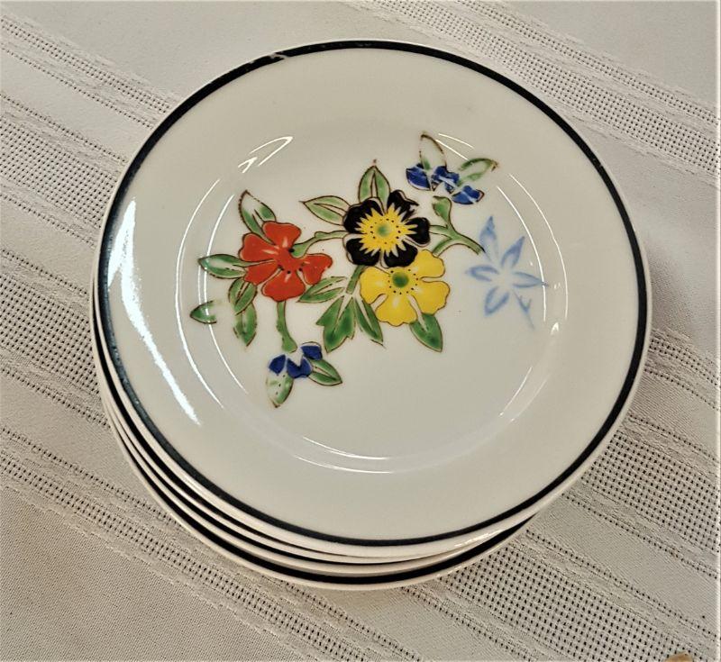 Hand Painted Floral Design Black Trim Snack Plates, 5" Plates.