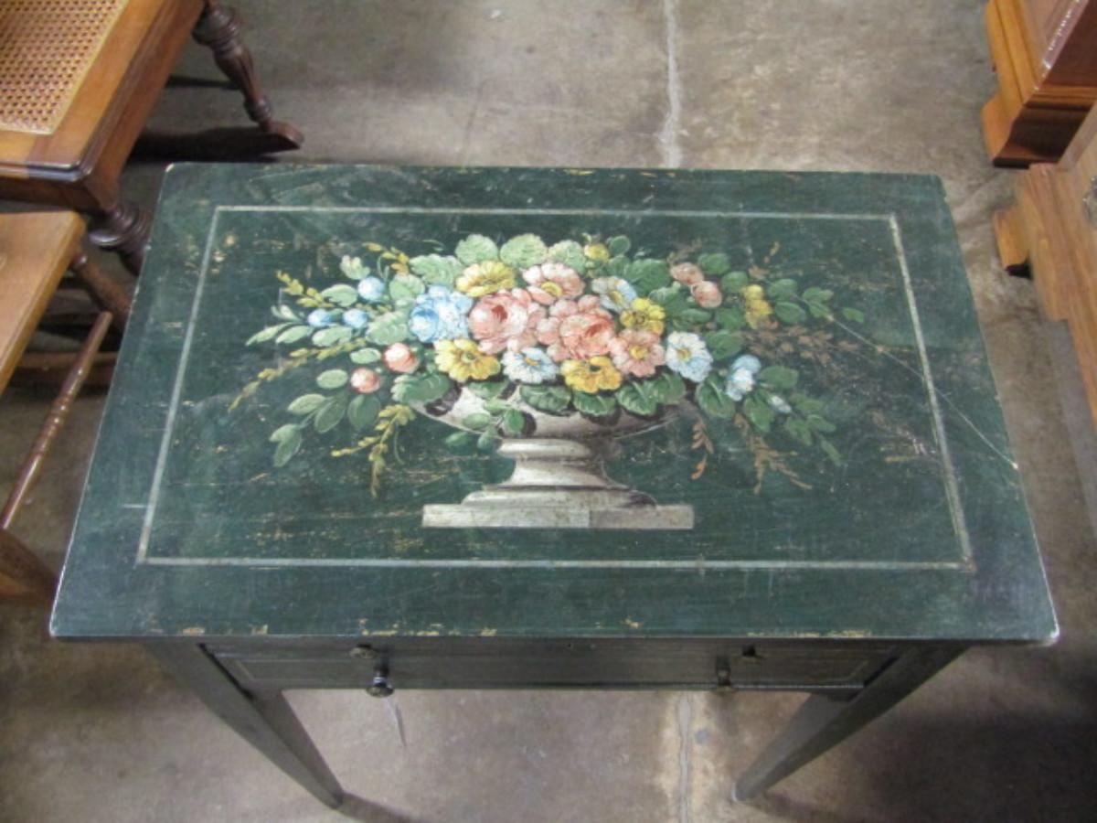 Vintage Hand Painted Italian Wooden Accent/Side Table Flowers in Urn M.C.F. Design (#1 of 2)