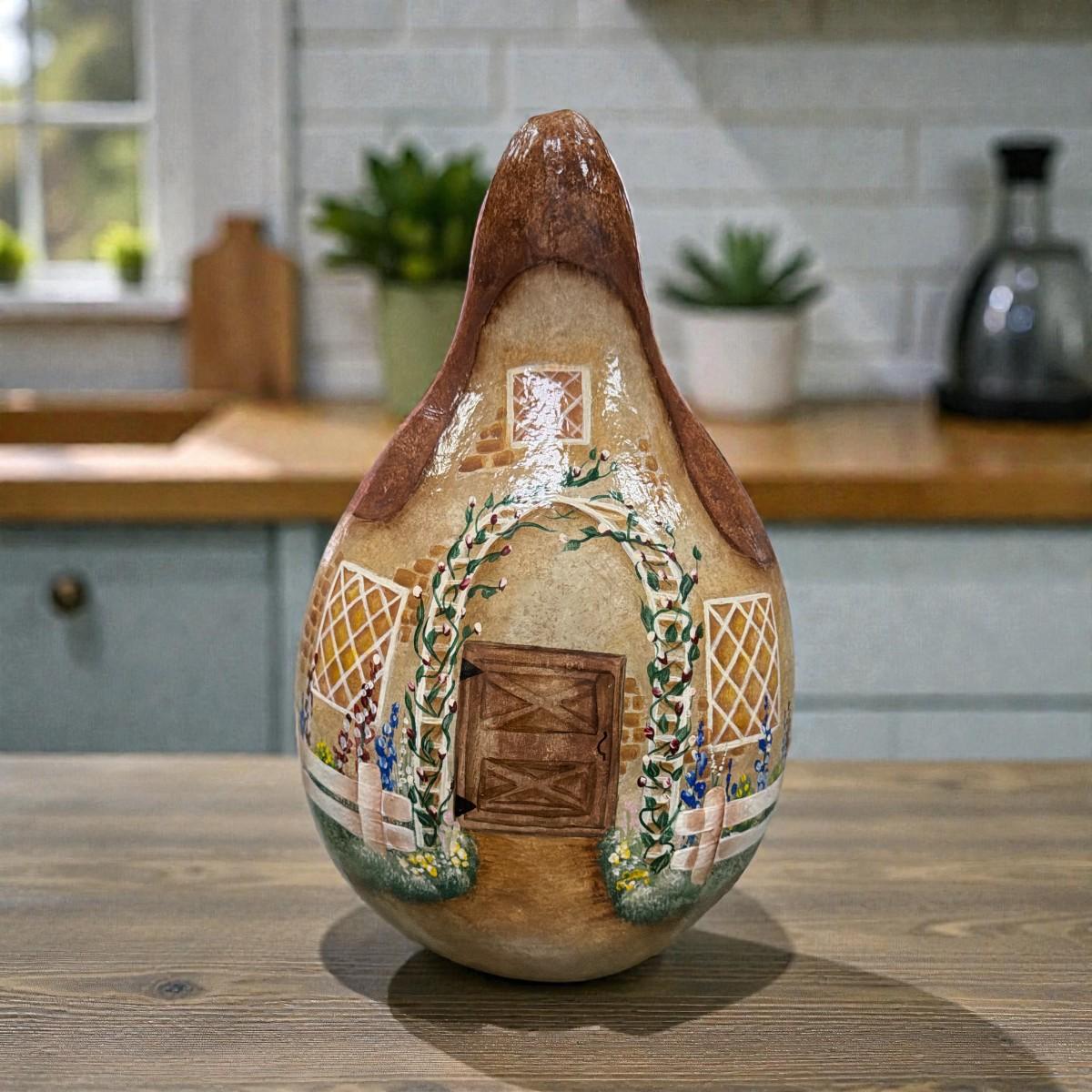 Hand Painted Folk Art Style Gourd