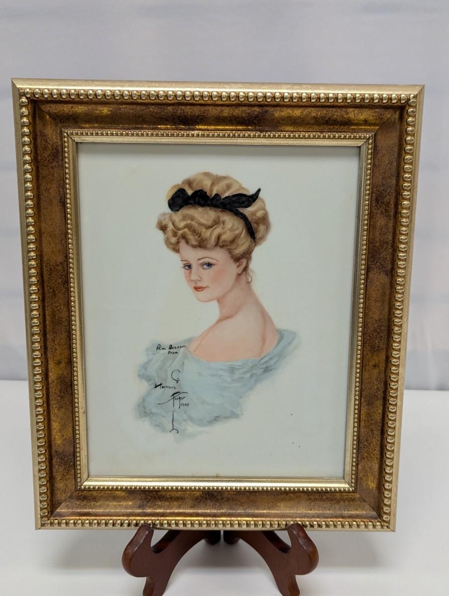 Hand Painted Framed Signed Porcelain Art