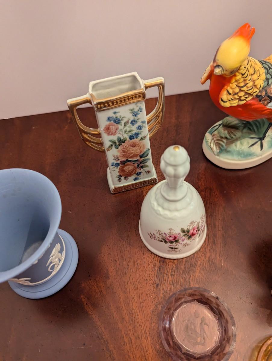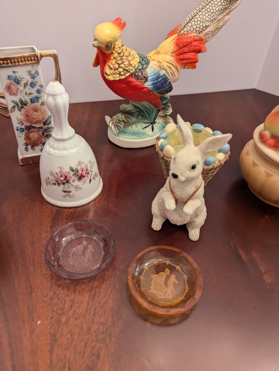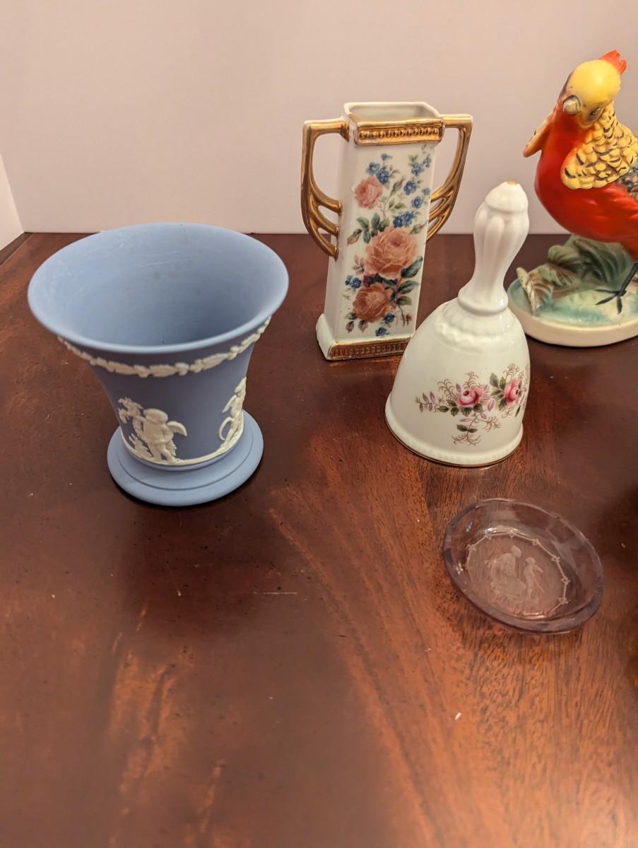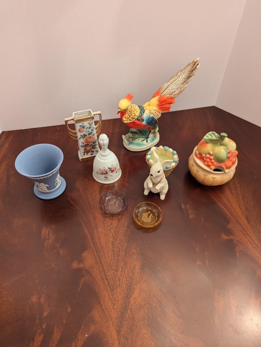 Hand Painted German Vase & Artmark Pheasant Bird Figure Open Salt Dishes
