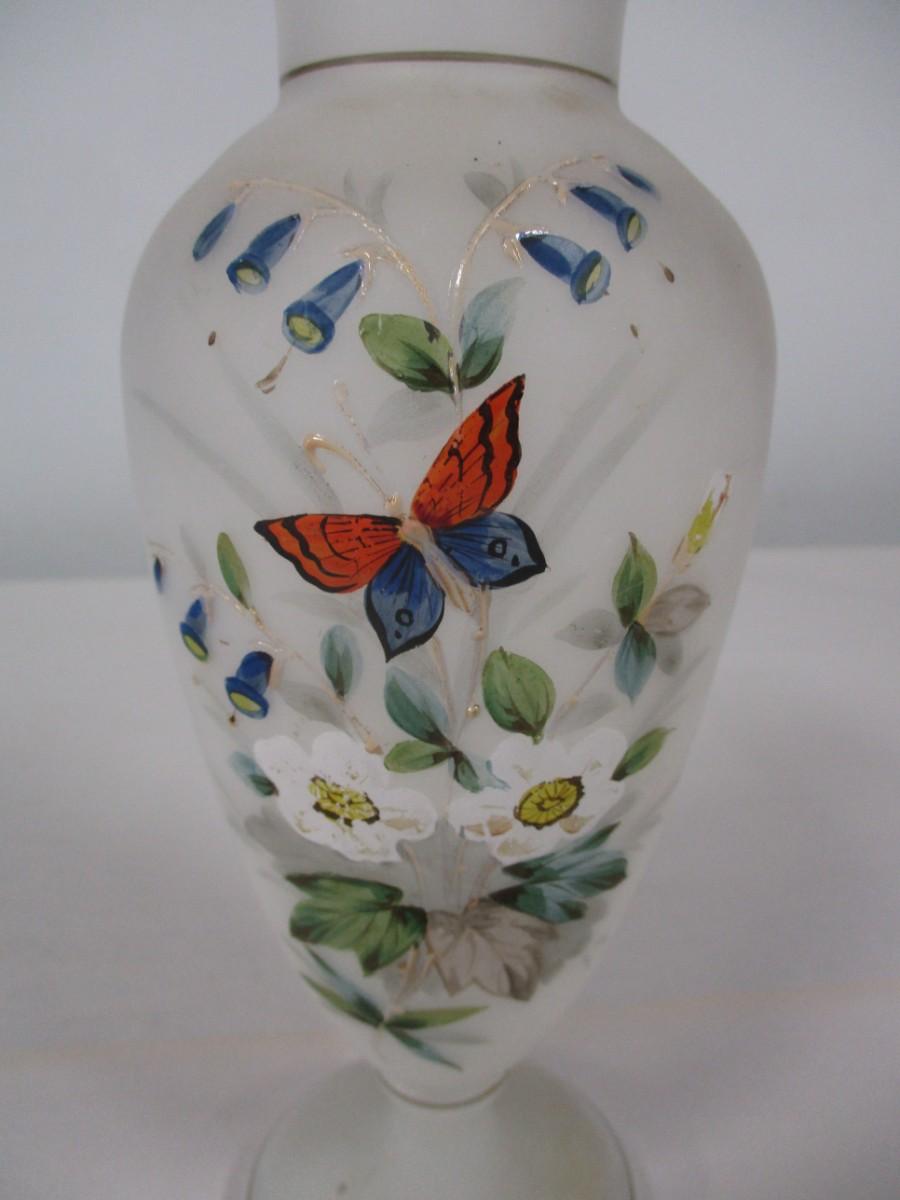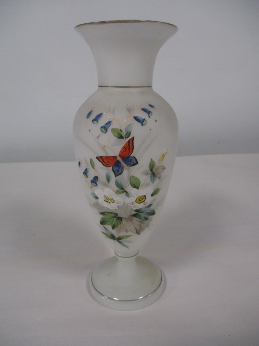 Hand Painted Butterfly and Flowers Opaque Glass Vase