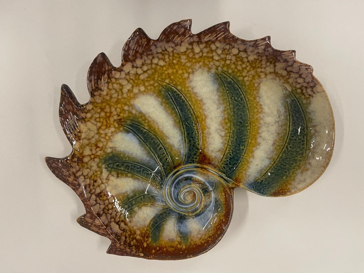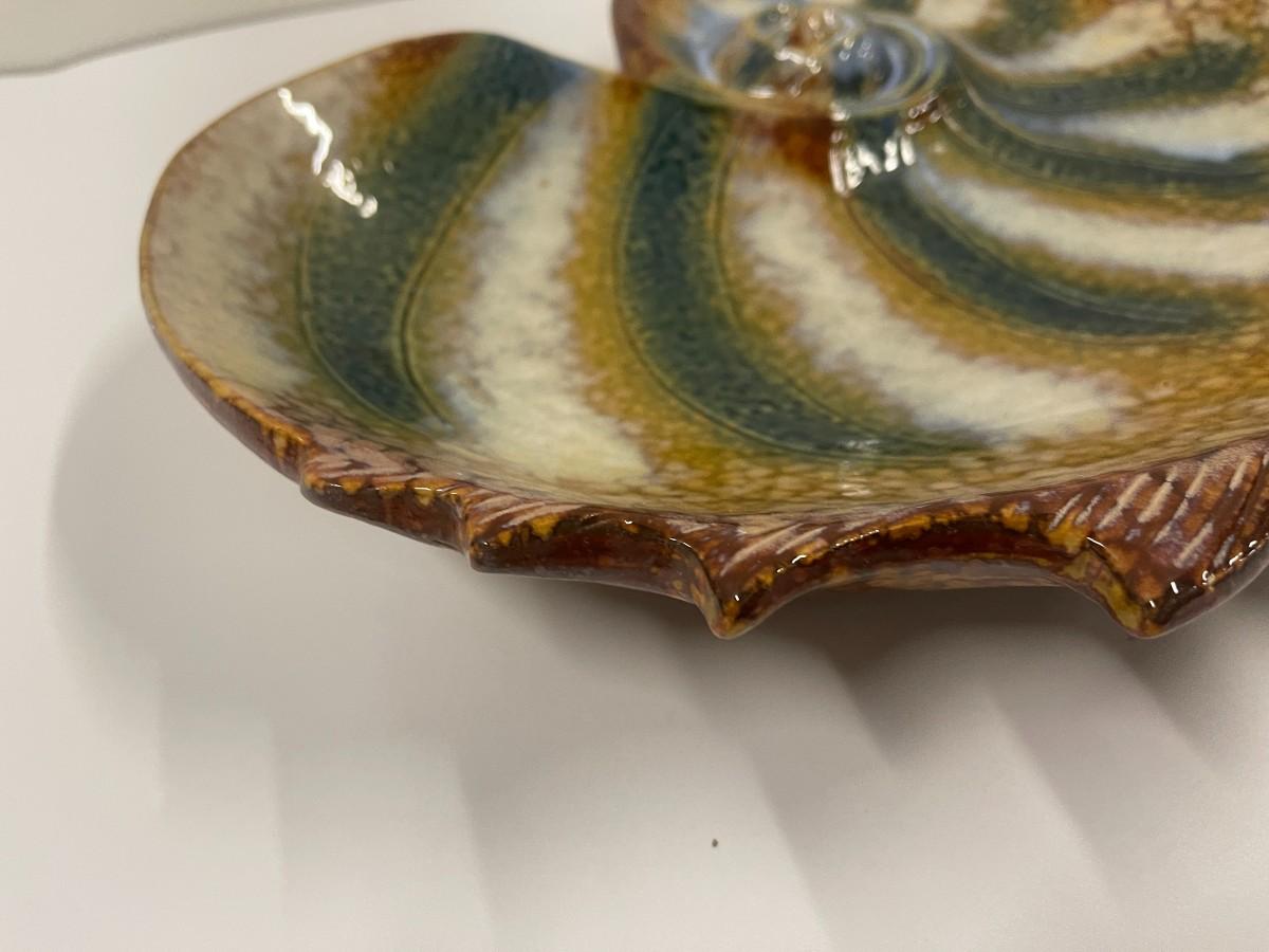 Hand Painted Glazed Pottery Shell Shaped Platter
