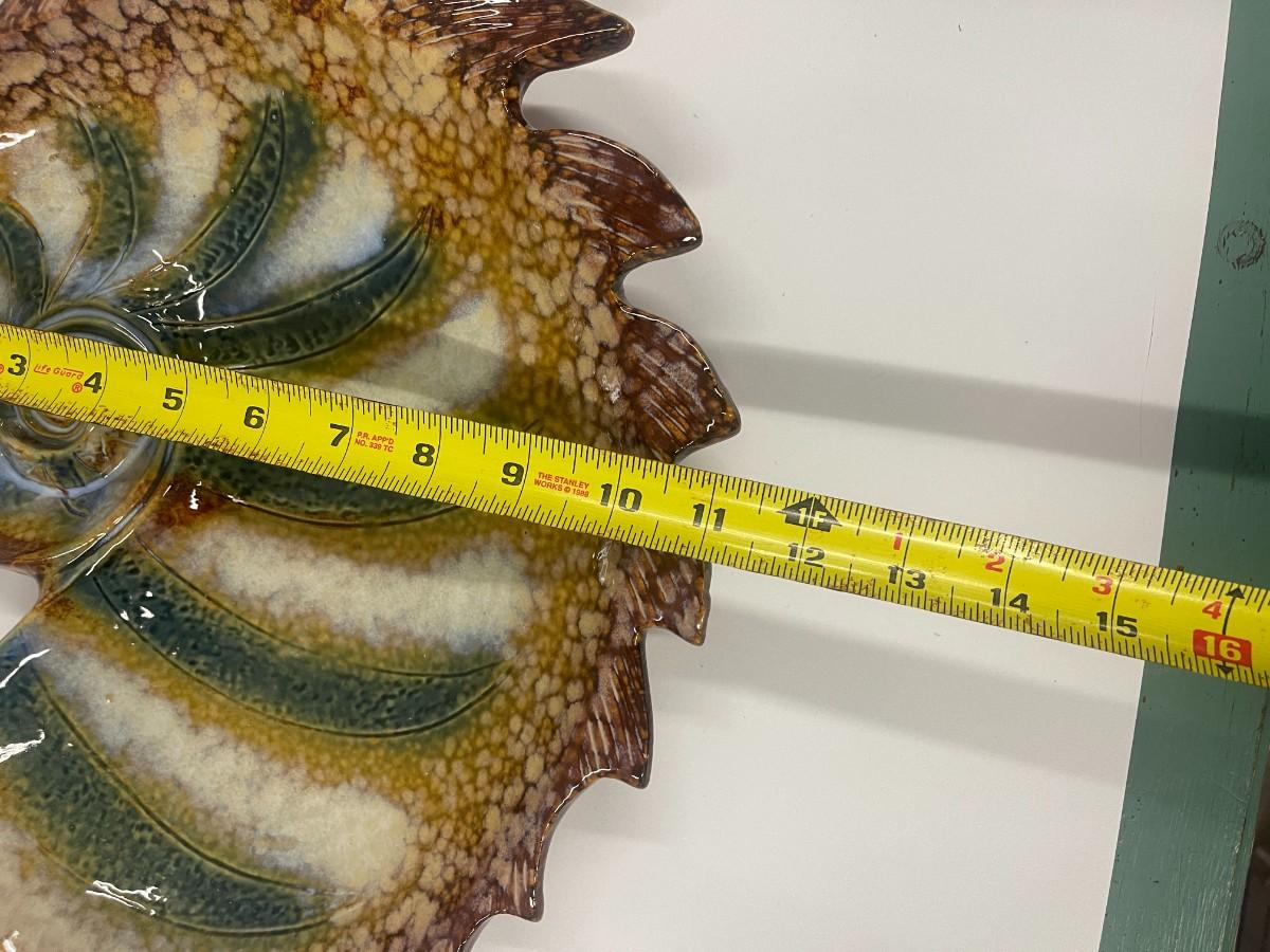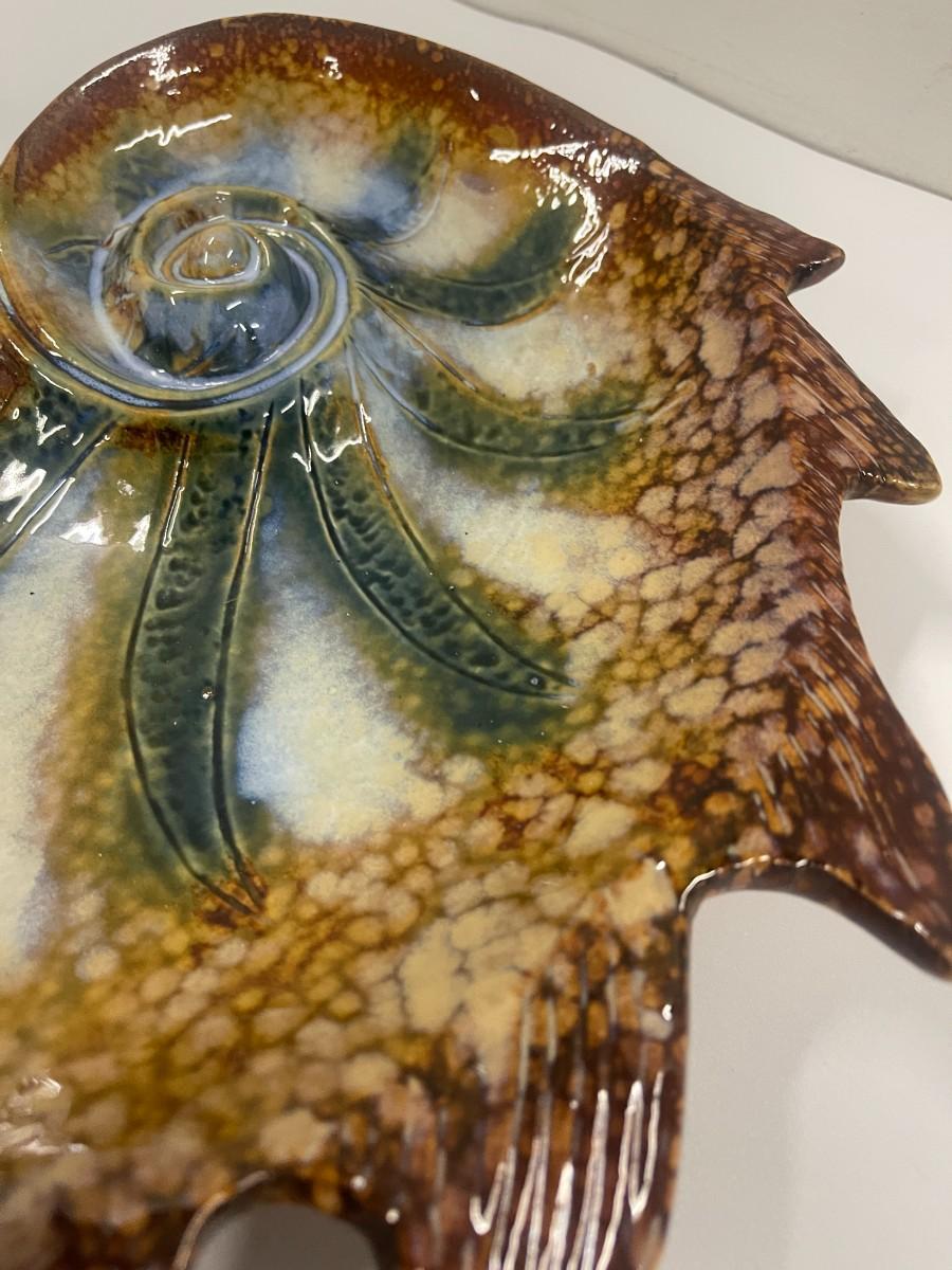 Hand Painted Glazed Pottery Shell Shaped Platter, excellent condition.