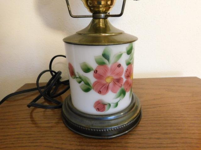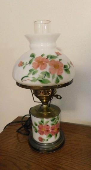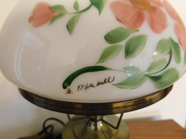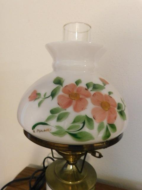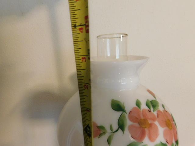 Hand Painted Globe Electric Hurricane Lamp Signed by Artist Illegible 17"