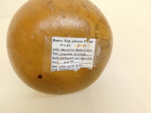 Hand Painted Gourd Art 'Siesta Sister ' by Jenyth Bramwell 9"