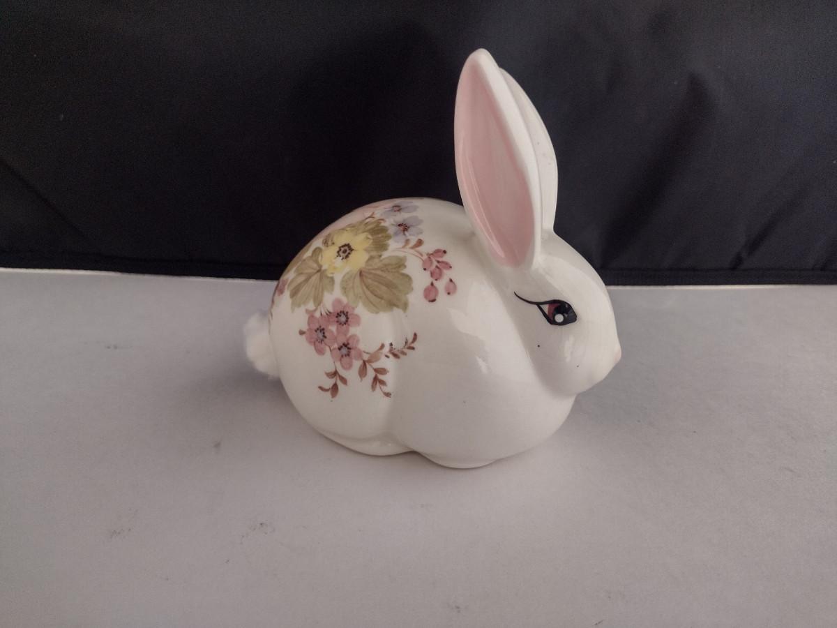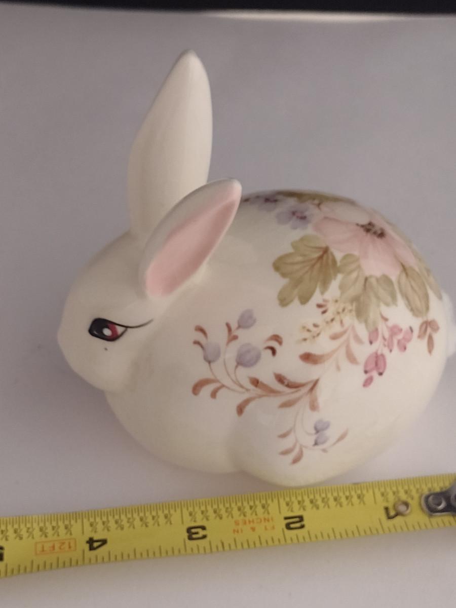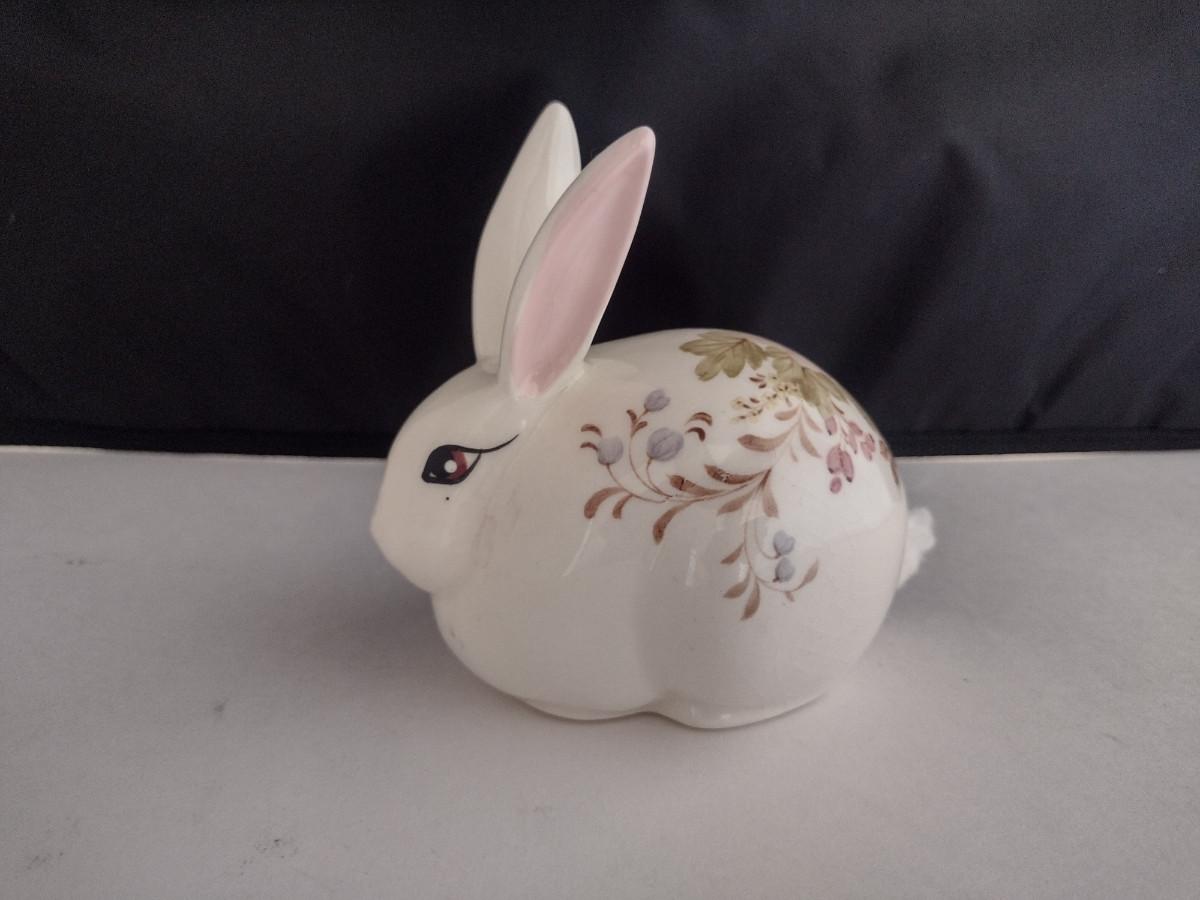 Hand Painted Hammersley Porcelain Rabbit Cotton Ball Dispenser- Approx 5" Tall
