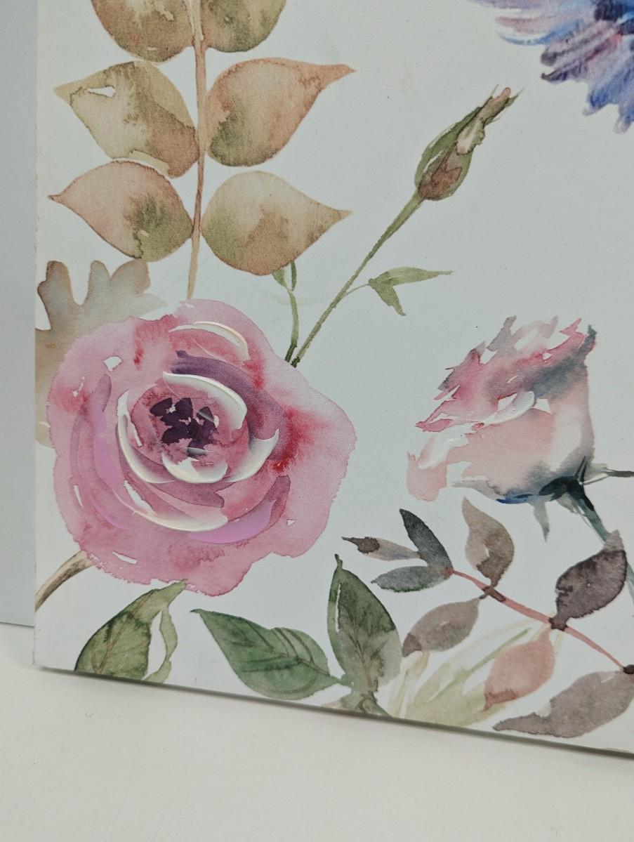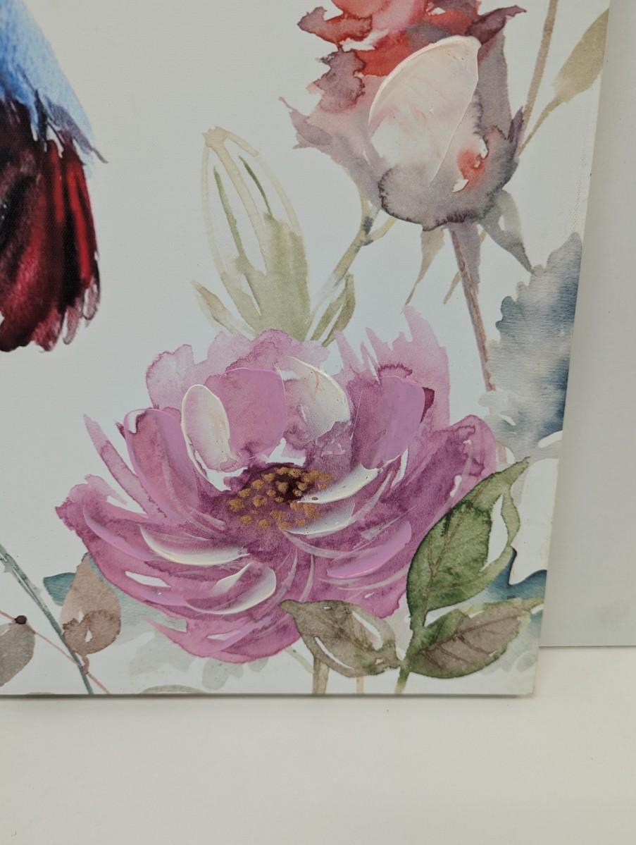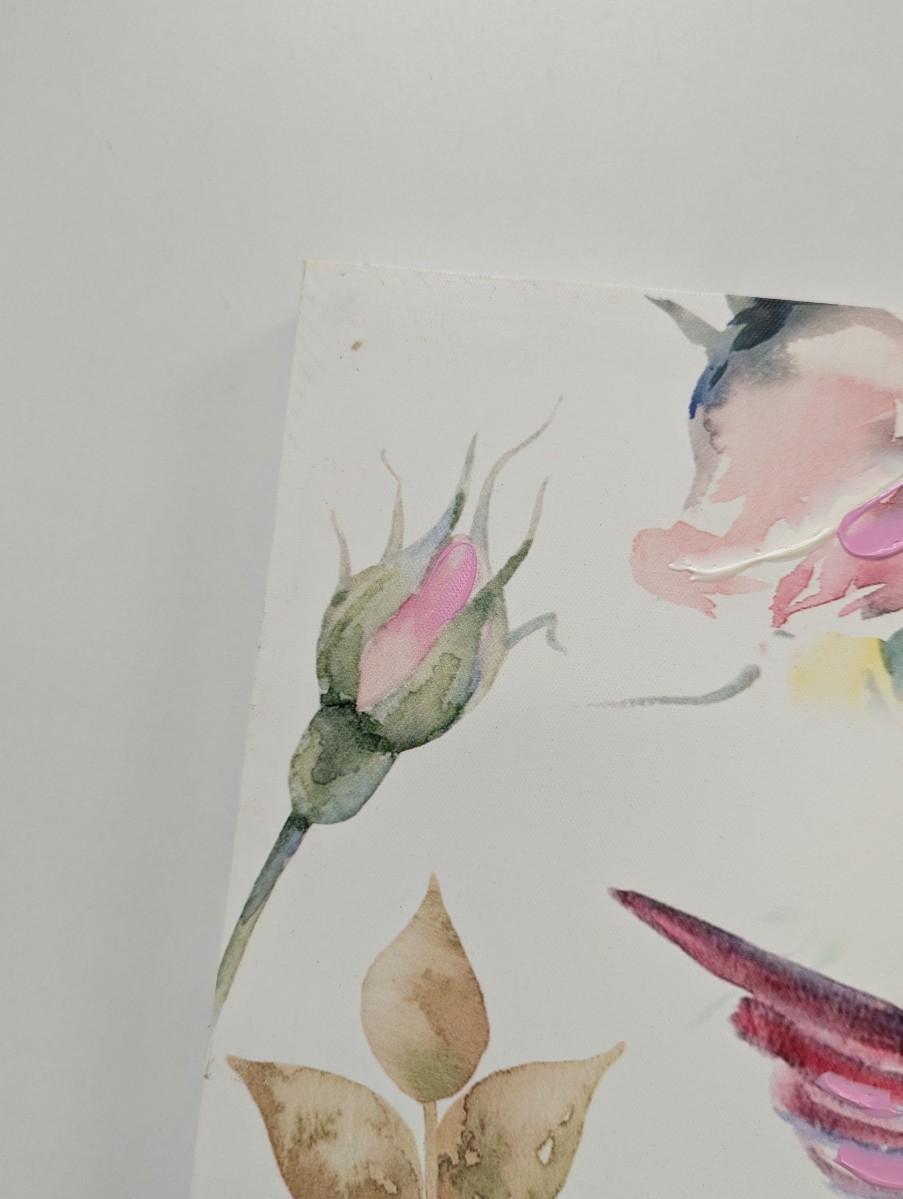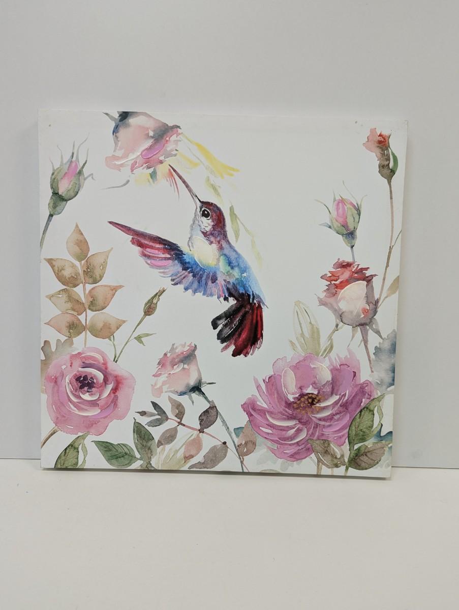 Hand Painted Hummingbird & Roses On Canvas Approx 19 1/2" x 19 1/2""