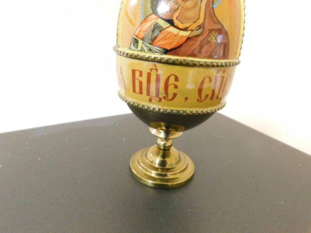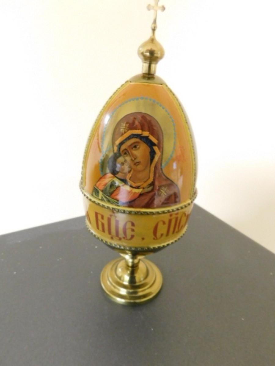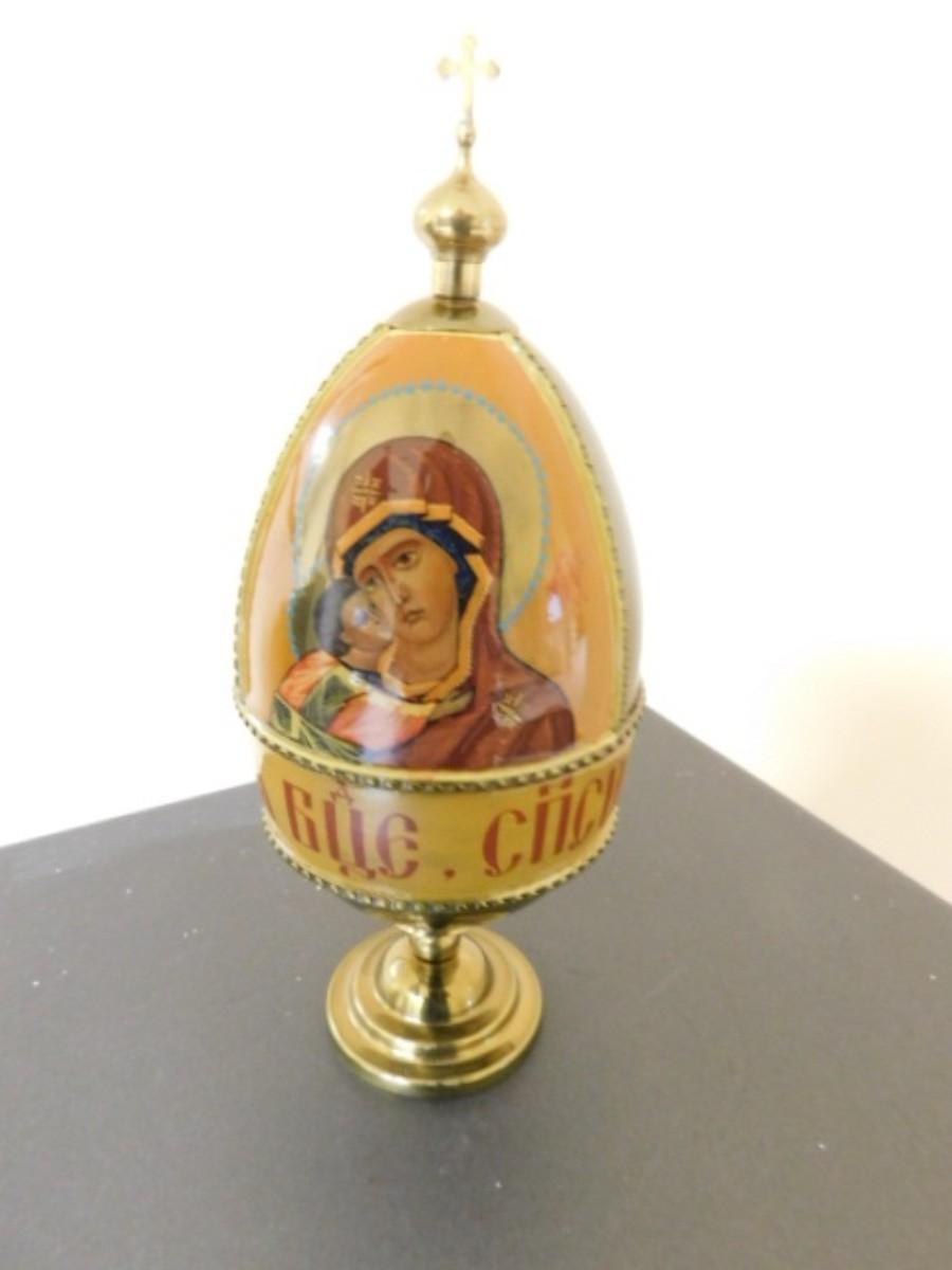 Hand Painted Icon Egg Madonna and Child with Messiah Egg Inside