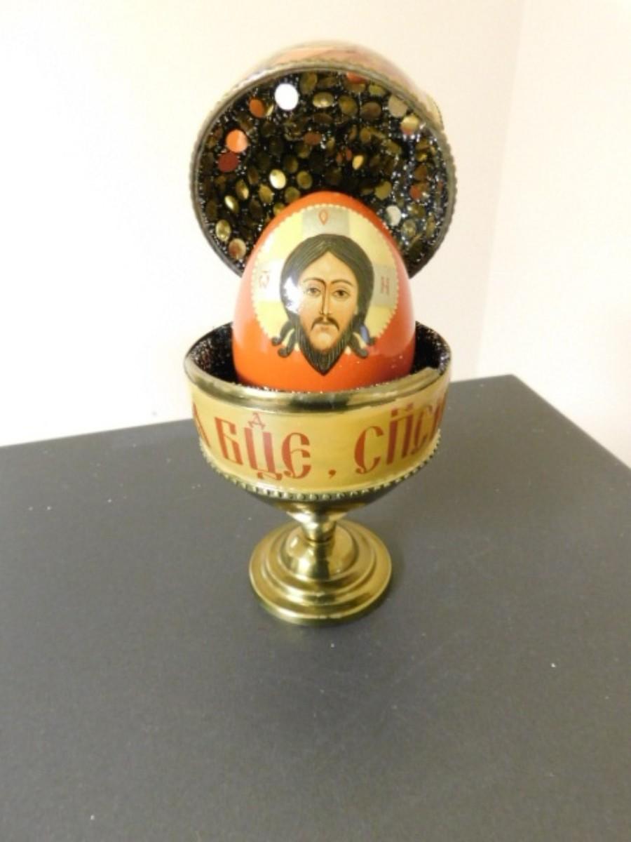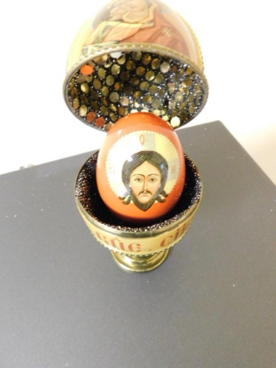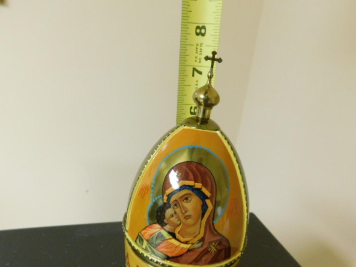 Hand Painted Icon Egg Madonna and Child with Messiah Egg Inside