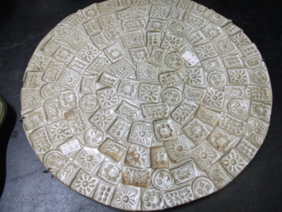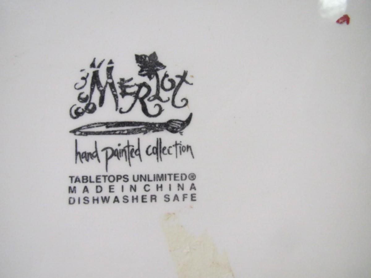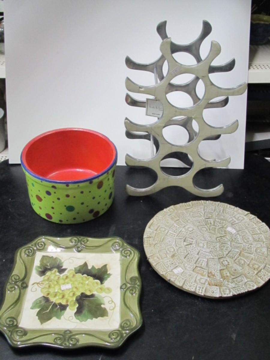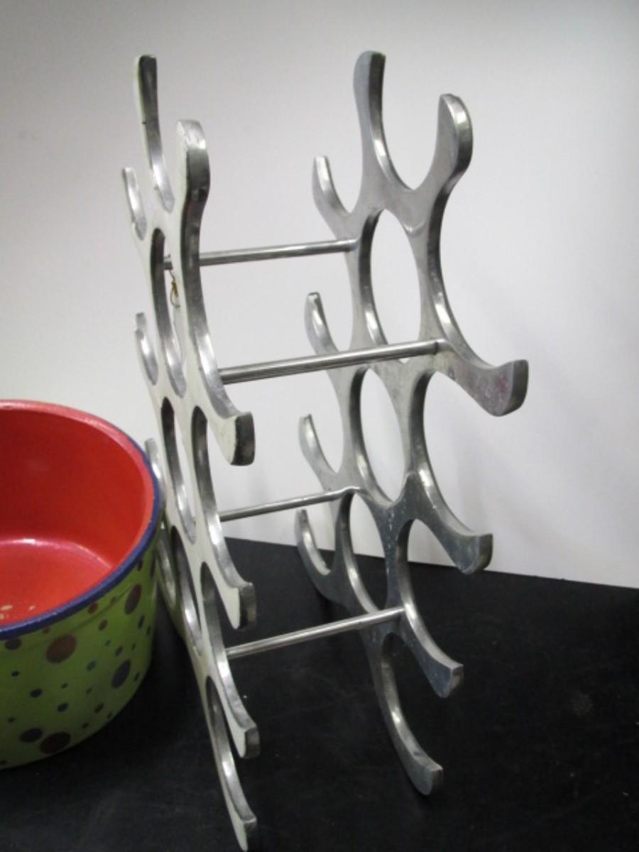 Hand Painted Merlot Dish 13" Geometric Wall Decor Aluminum Art Deco Style Wine Bottle Holder