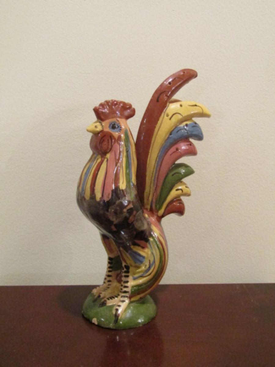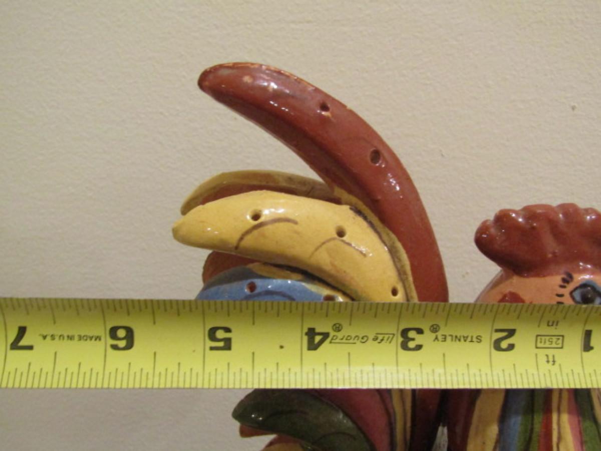 Hand Painted Mexican Pottery Rooster- Approx 10" Tall. Please see all pictures- small chip on base of item.