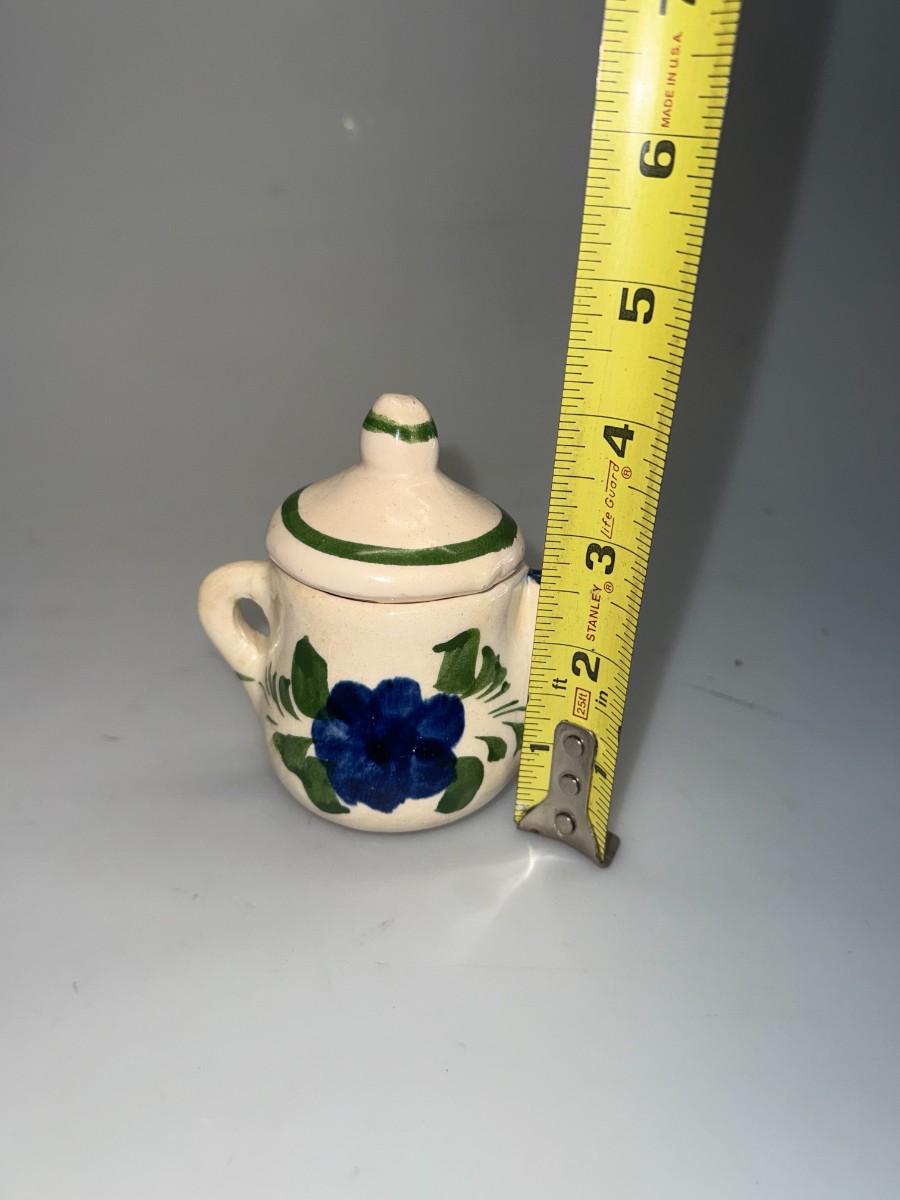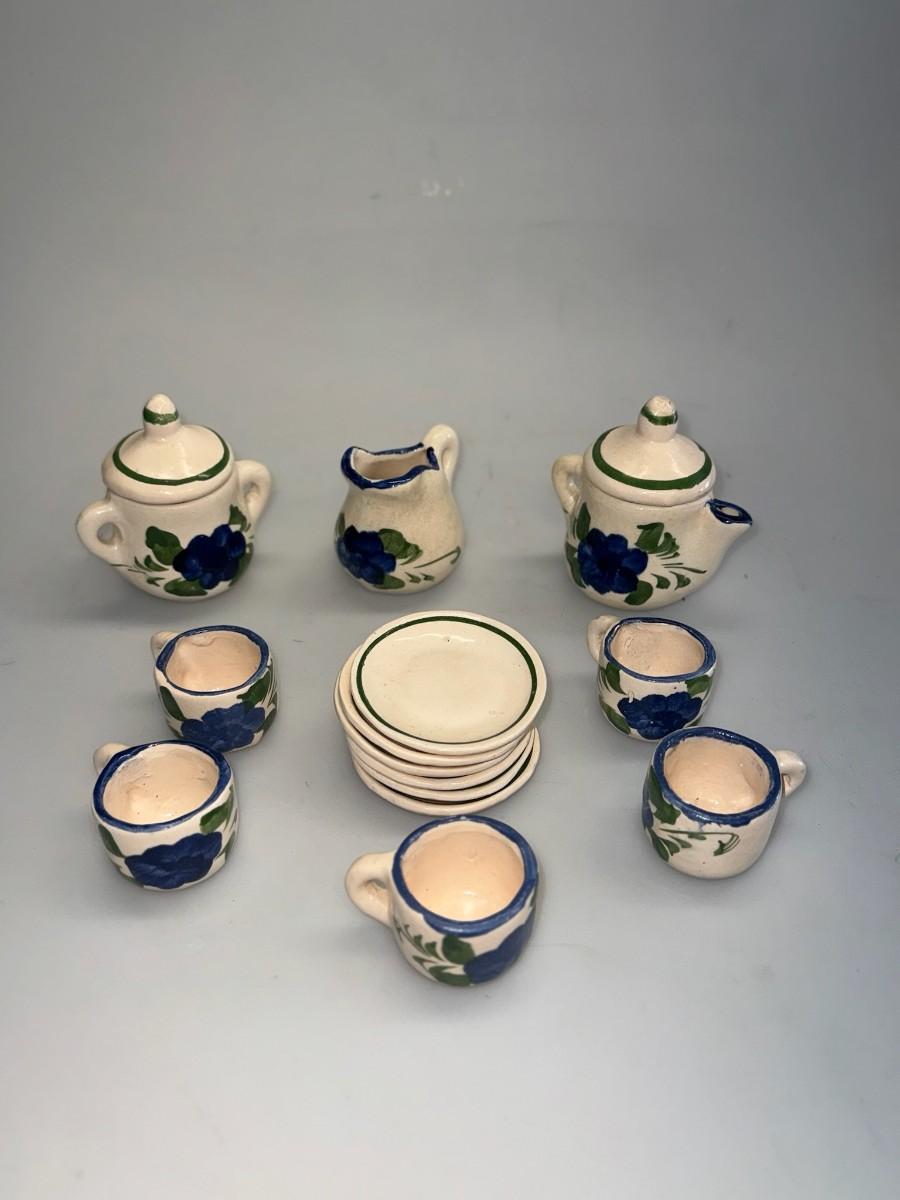 Hand Painted Miniature Ceramic Tea Set Teapot, Sugar & Creamer 6 cups & Saucers
