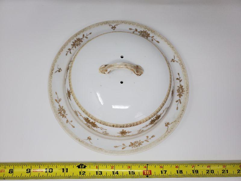 This piece is beautiful, no chips but has been used and may show signs of wear to the paint. Still in good condition and ready to serve at many more meals!
