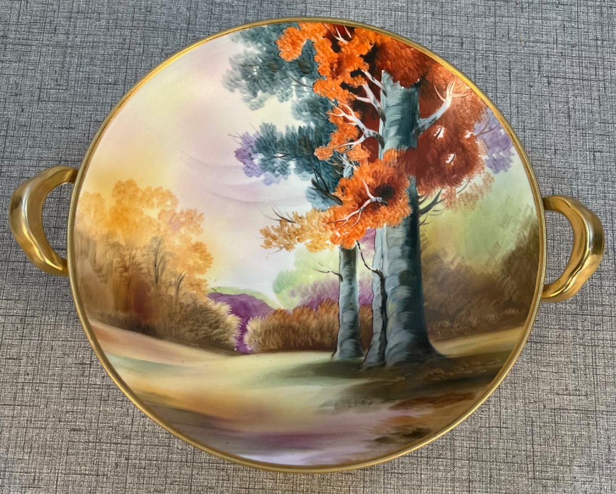 Hand Painted Nippon Handled and footed dish Bowl 9-1/2"