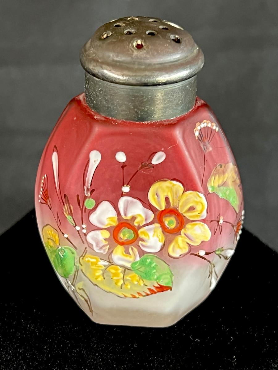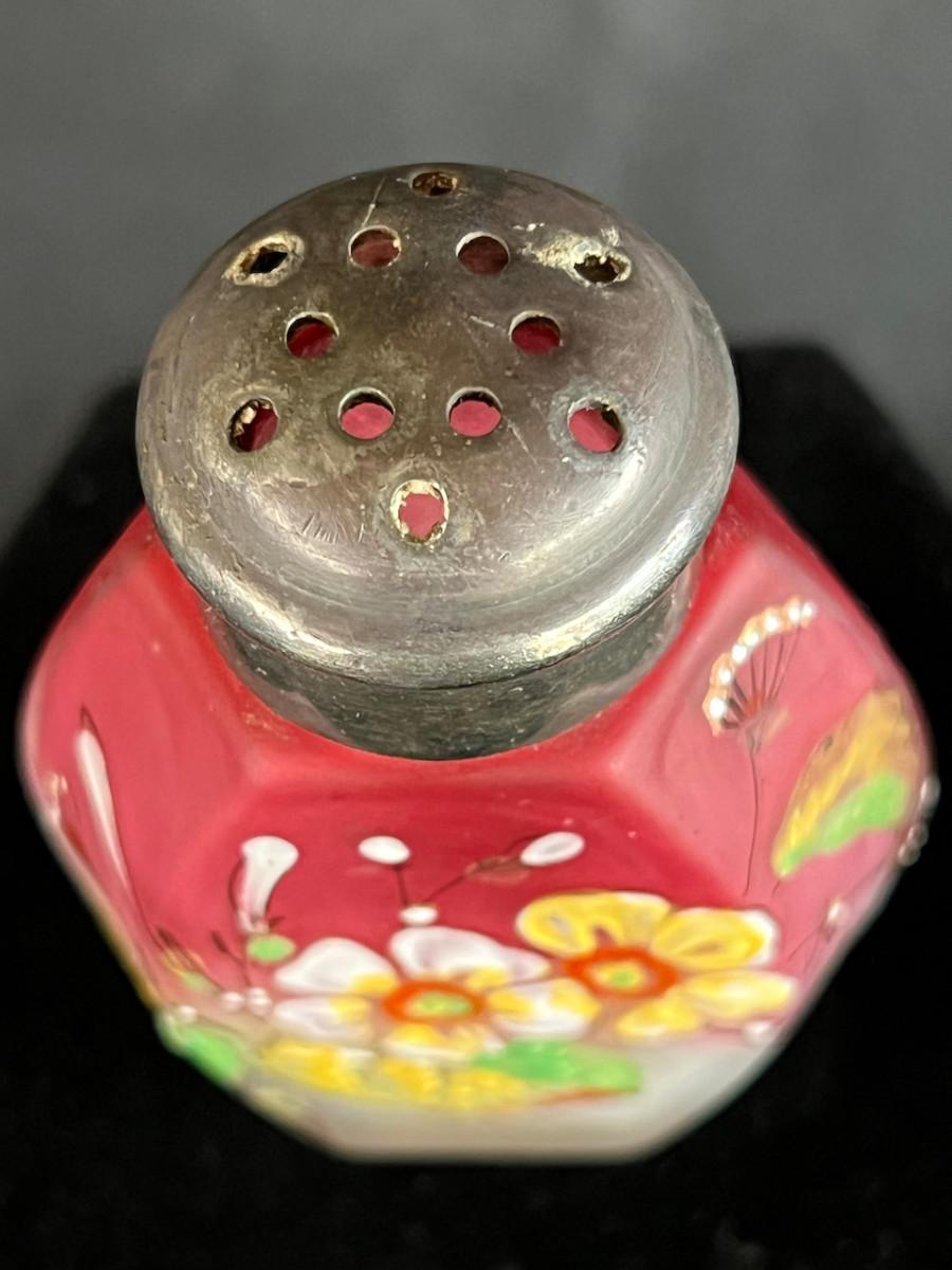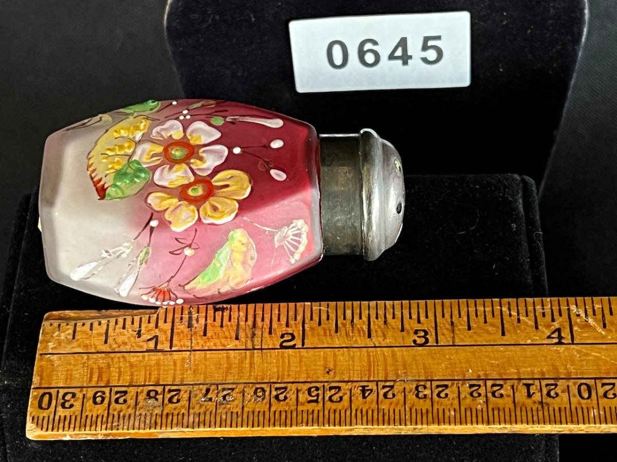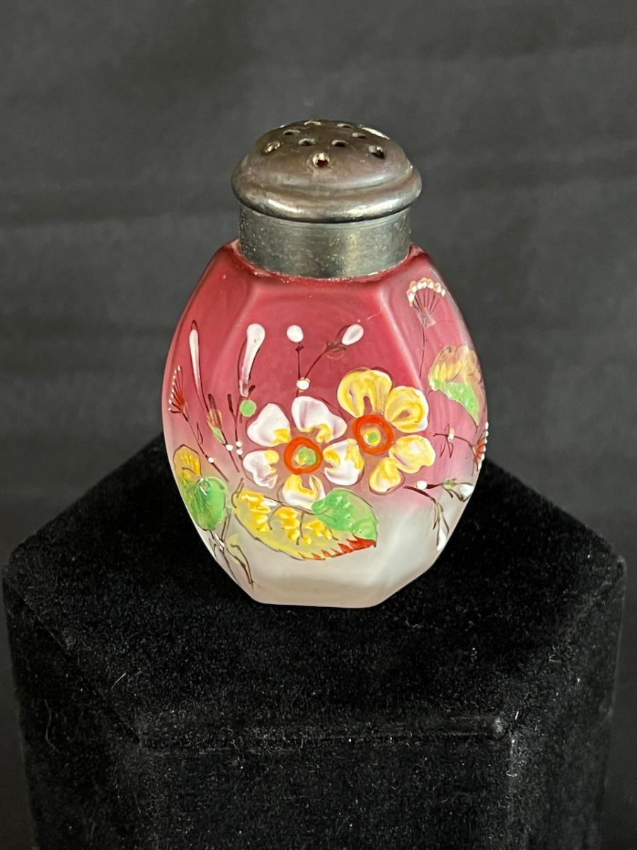 Hand Painted Ombre Glass Powder Bottle Enamel Floral design