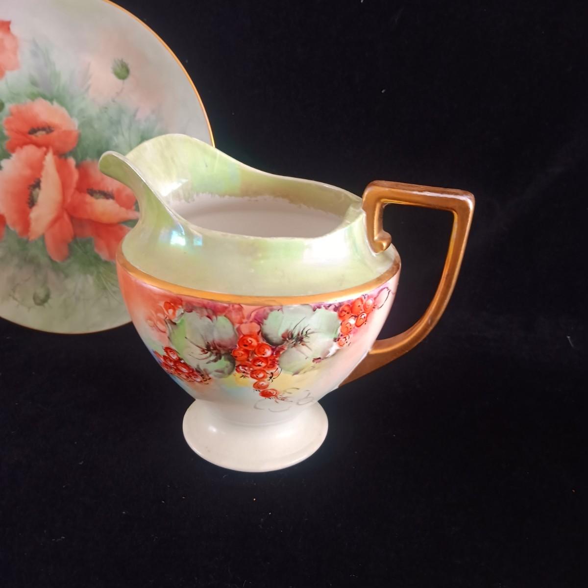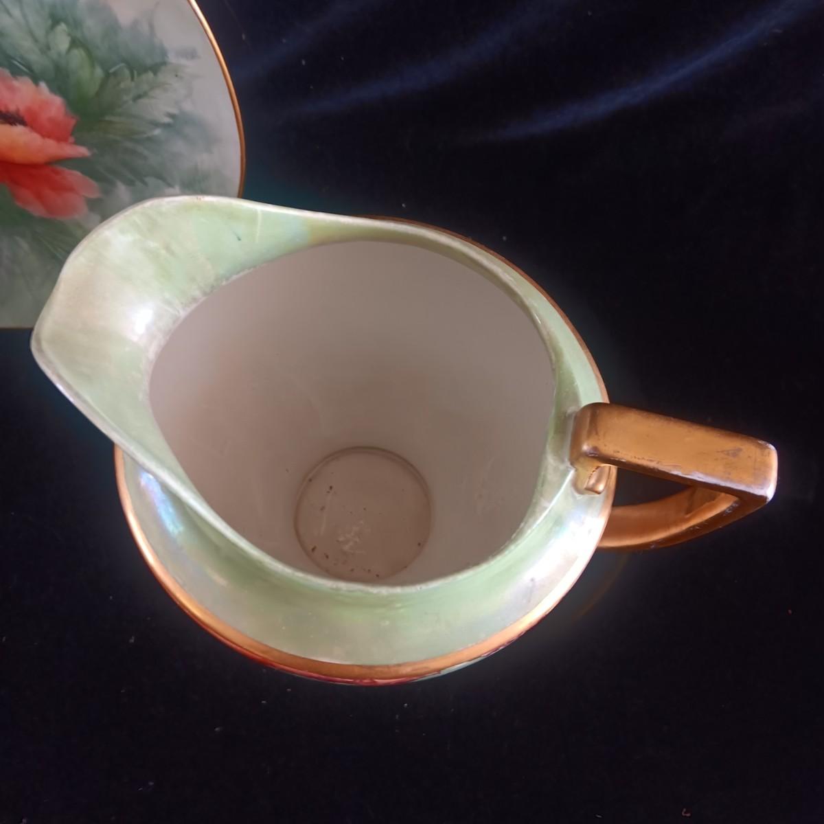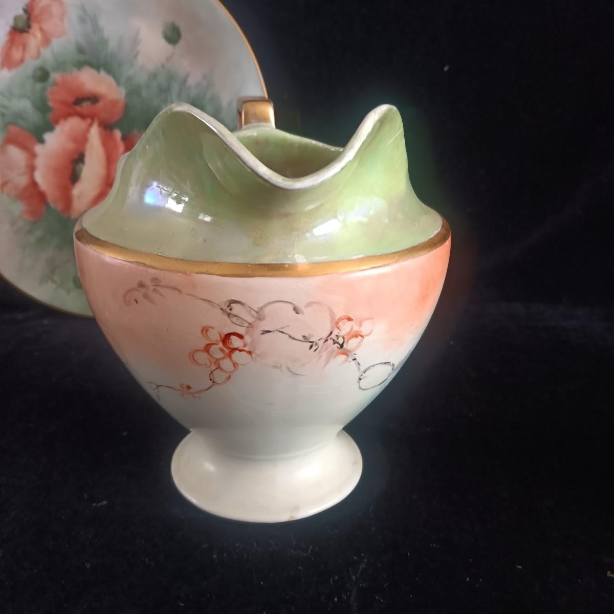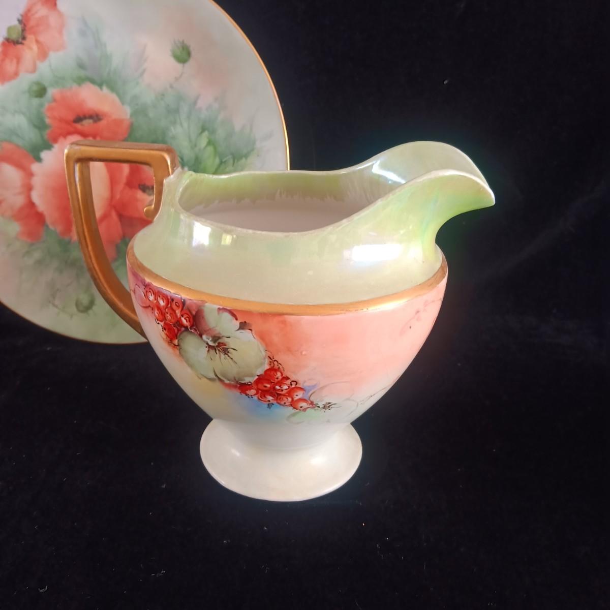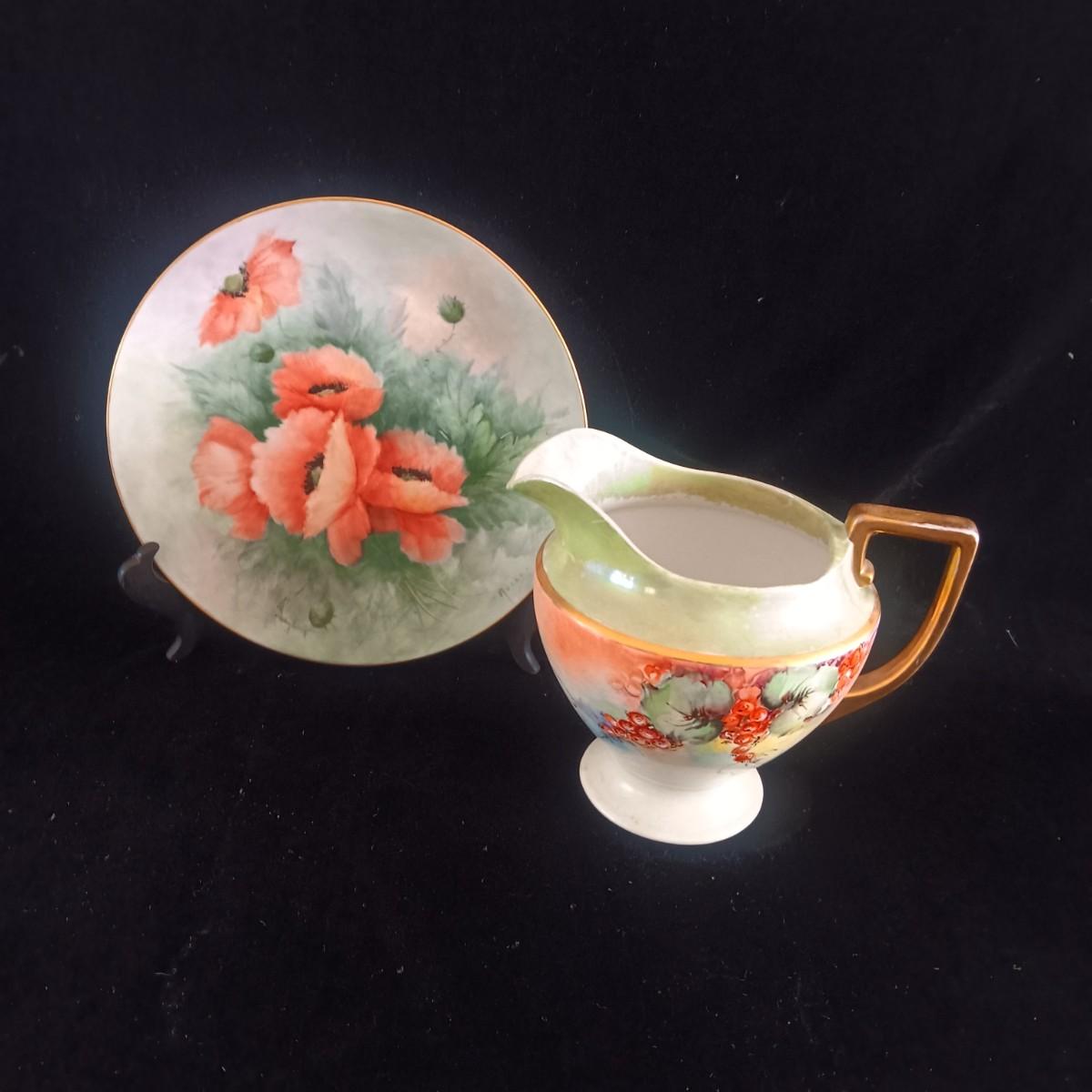HAND PAINTED PLATE FROM GERMANY AND SMALL CHINA PITCHER