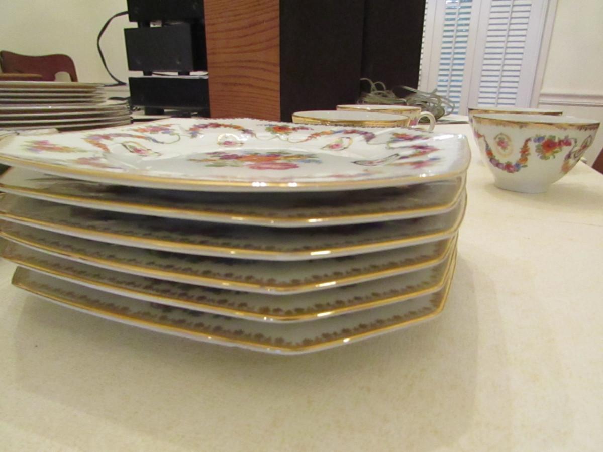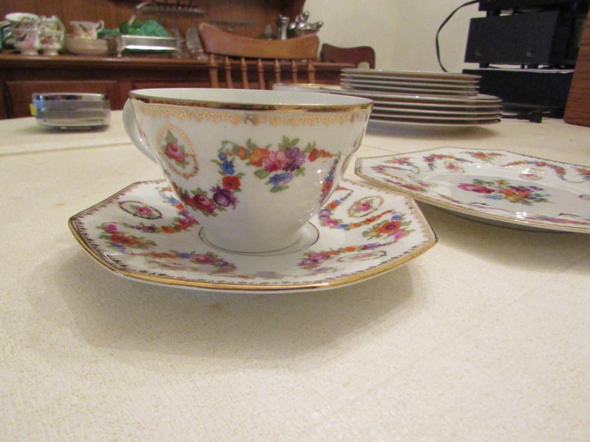 Hand Painted Porcelain Dishes- Bavaria Schumann- 16 Pieces. 6 small luncheon plates (7"), 5 saucers, 5 cups.