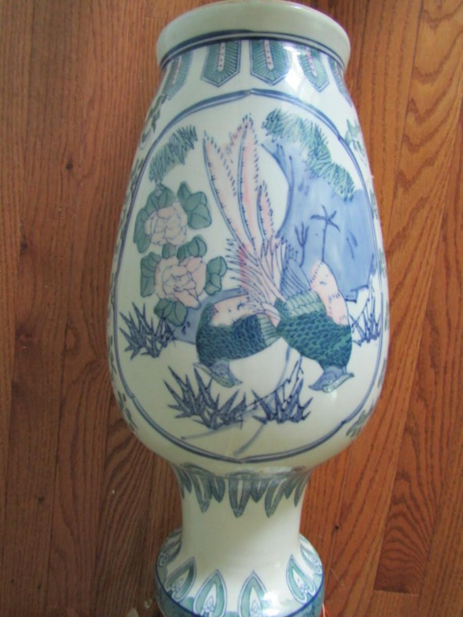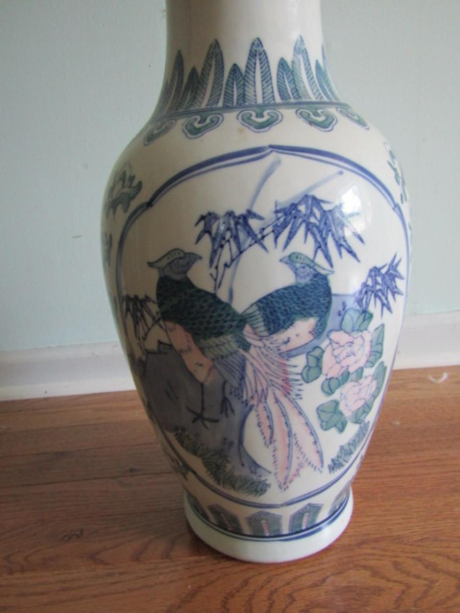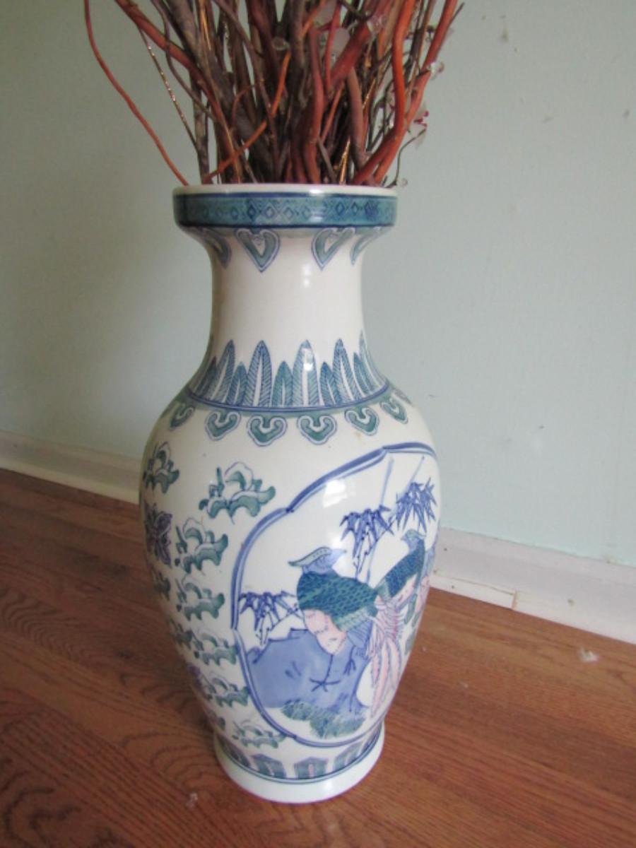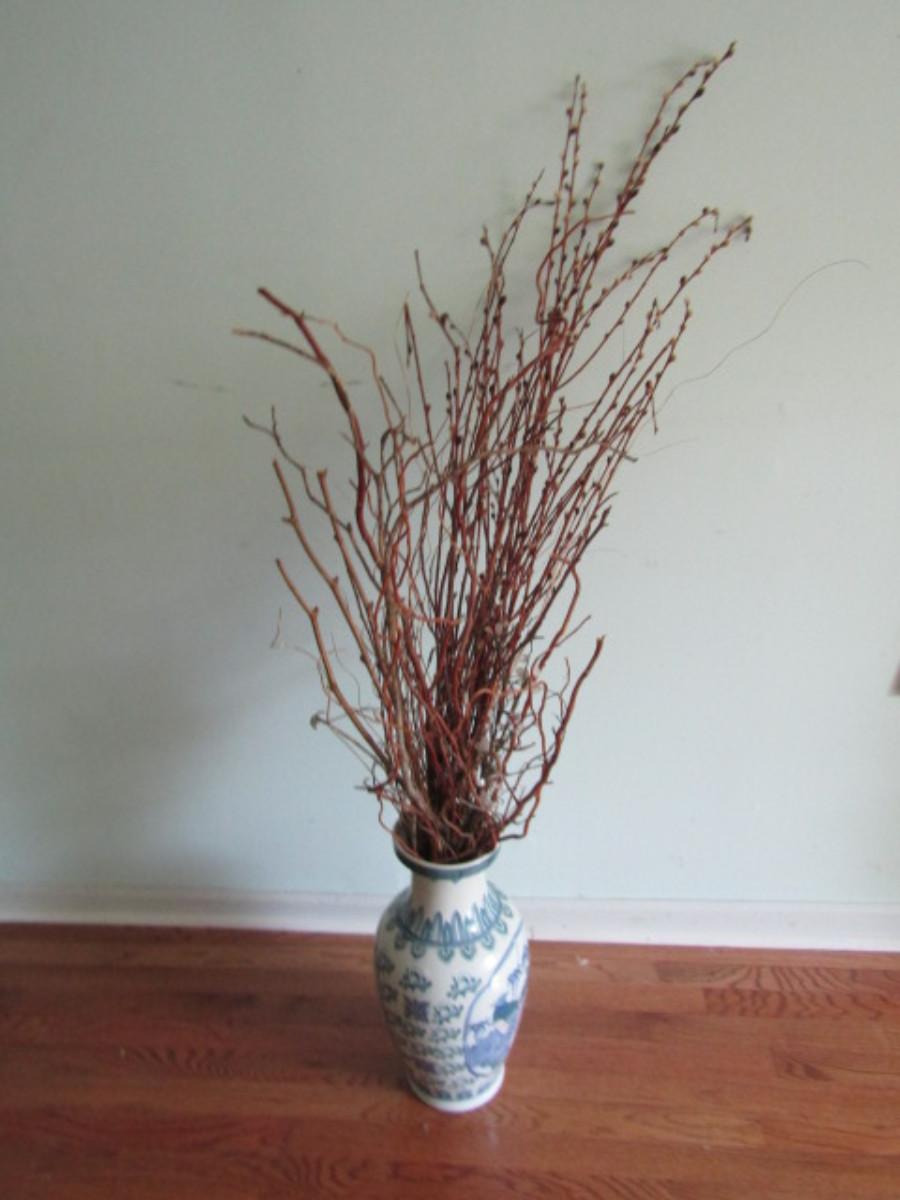 Hand Painted Porcelain Floor Vase with Natural Arrangement