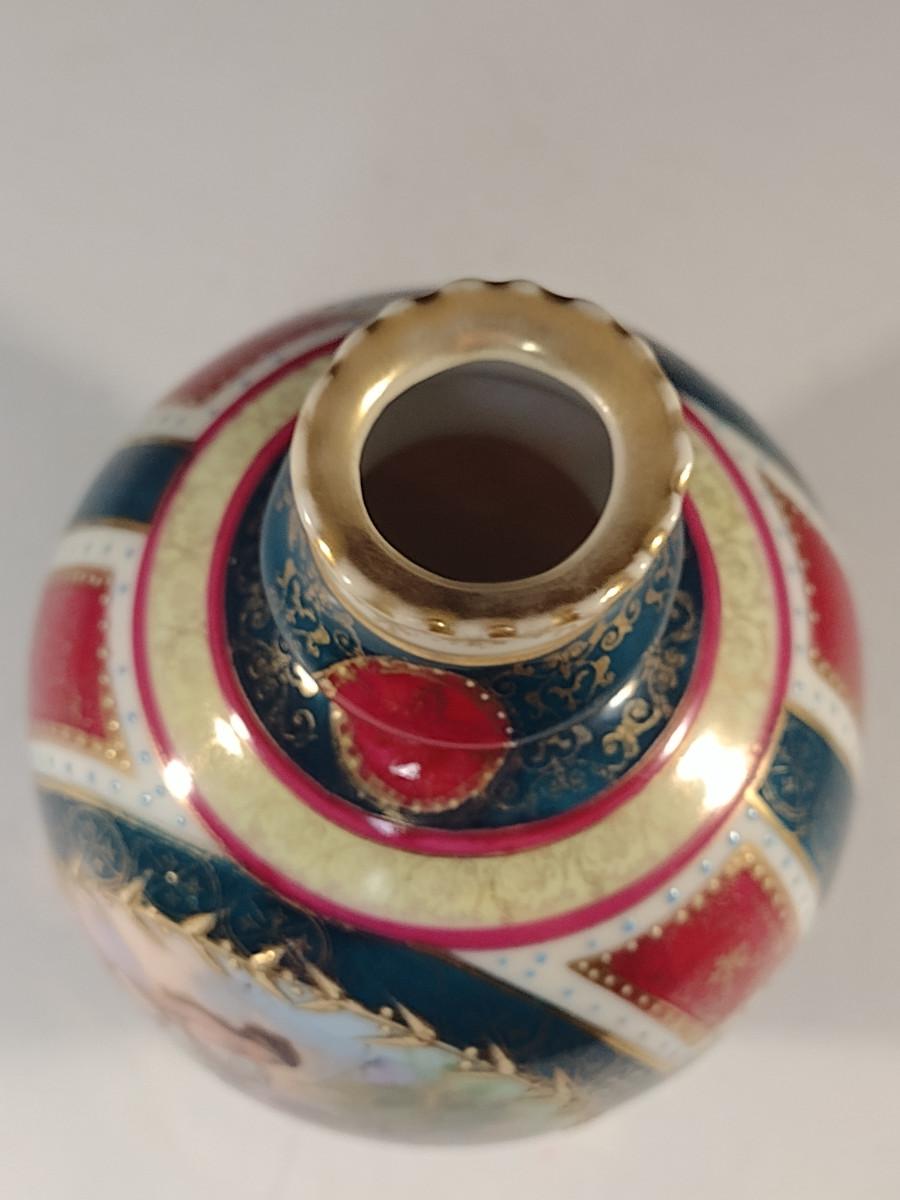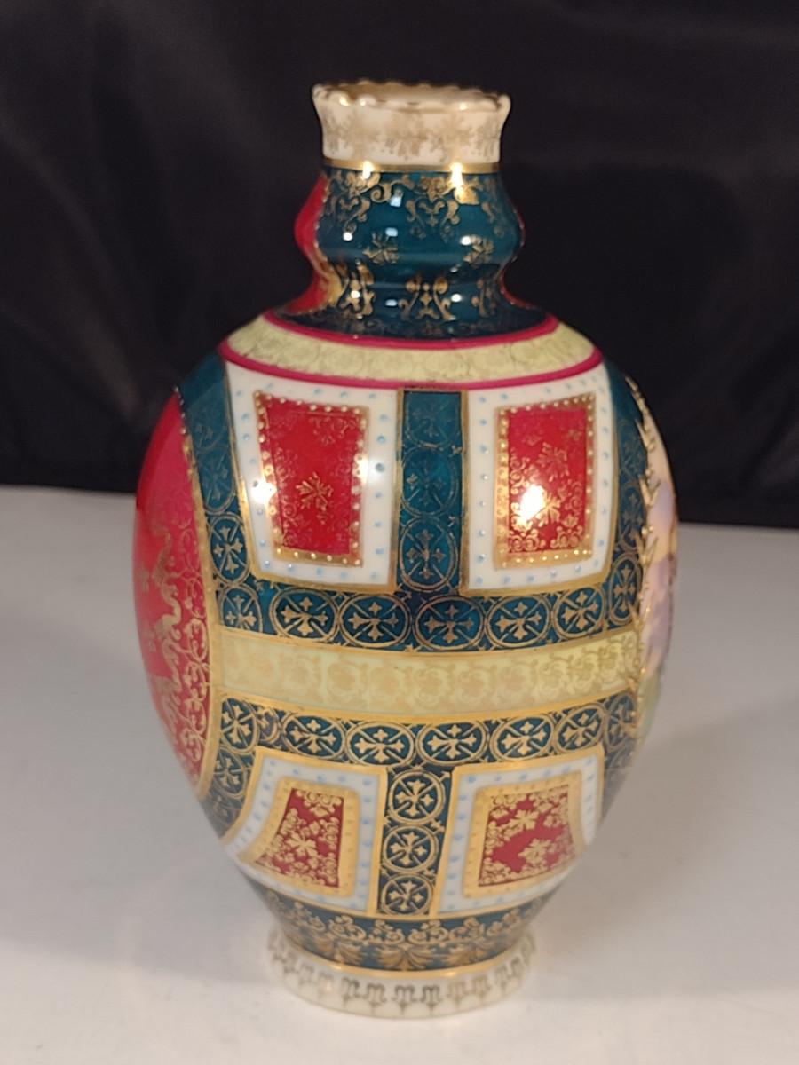 Hand Painted Porcelain Vase with Gold Detailing- Possible Royal Vienna- Approx 6 1/4" Tall