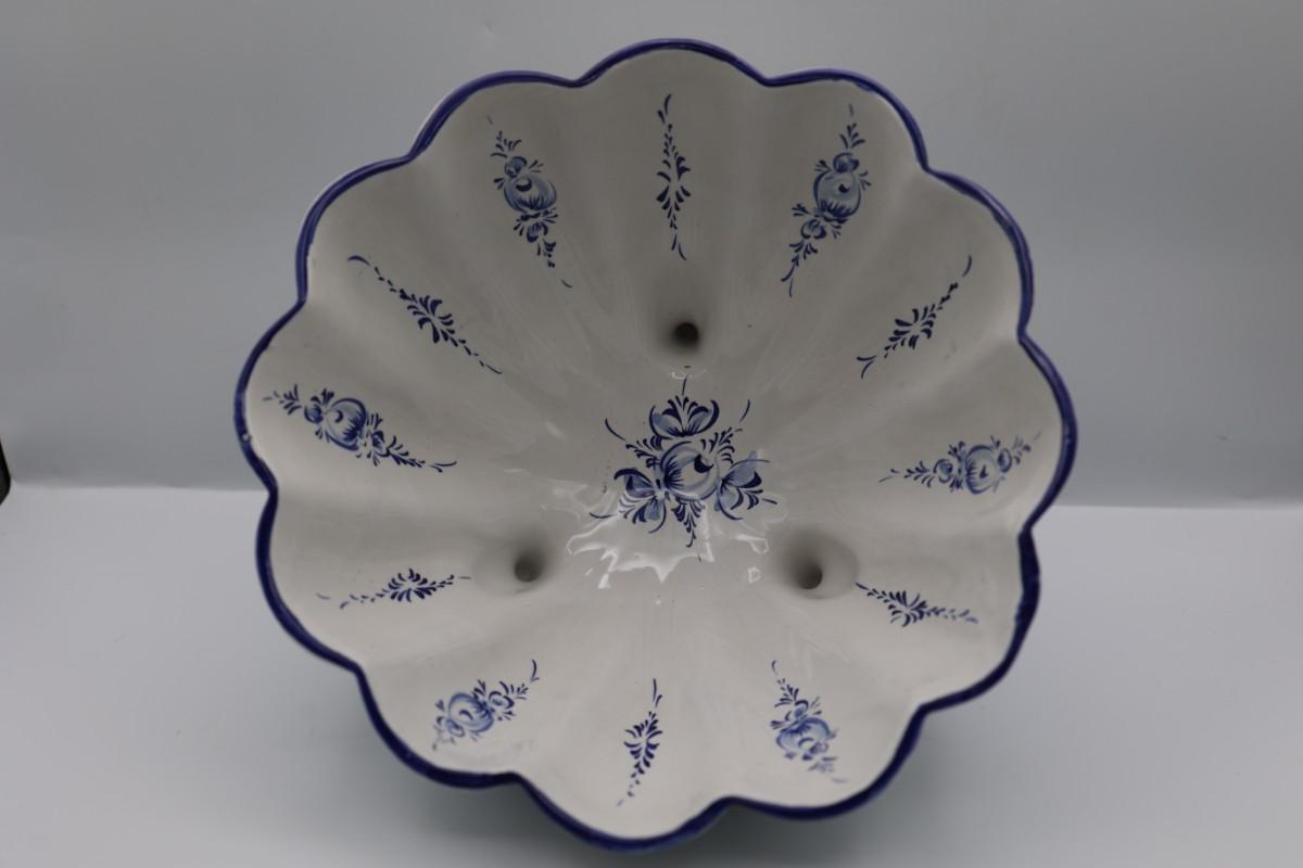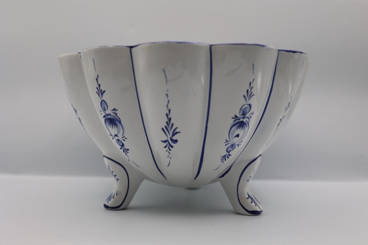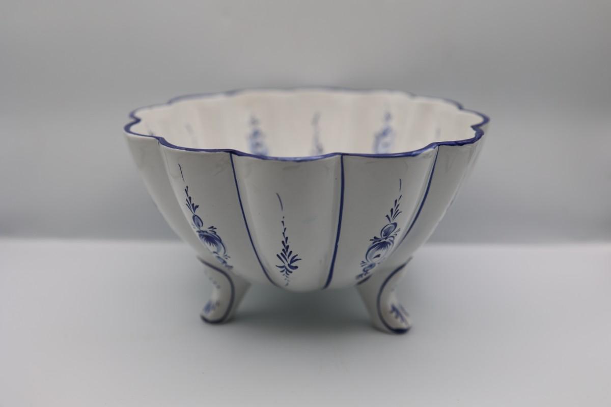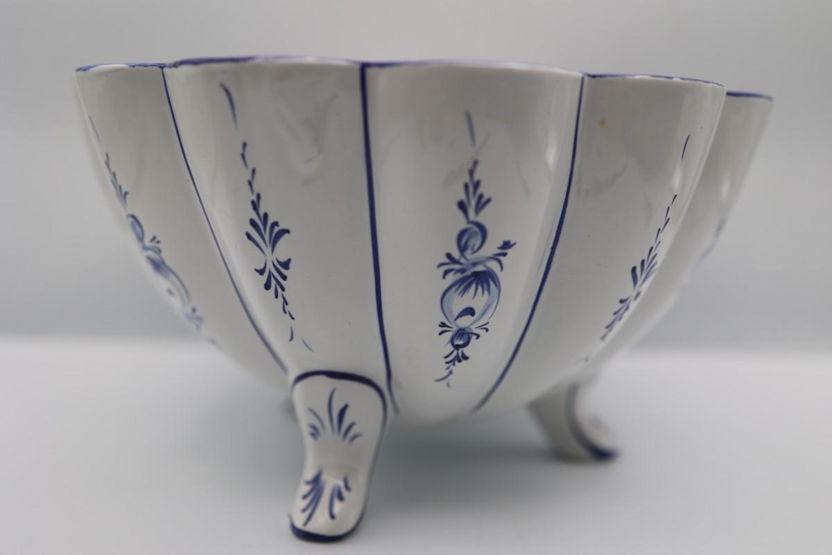 Hand Painted Portuguese Blue White Ceramic Footed Bowl