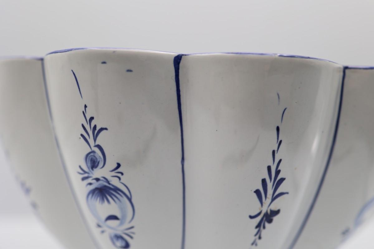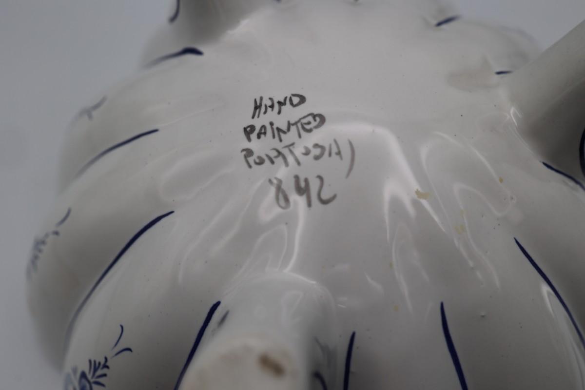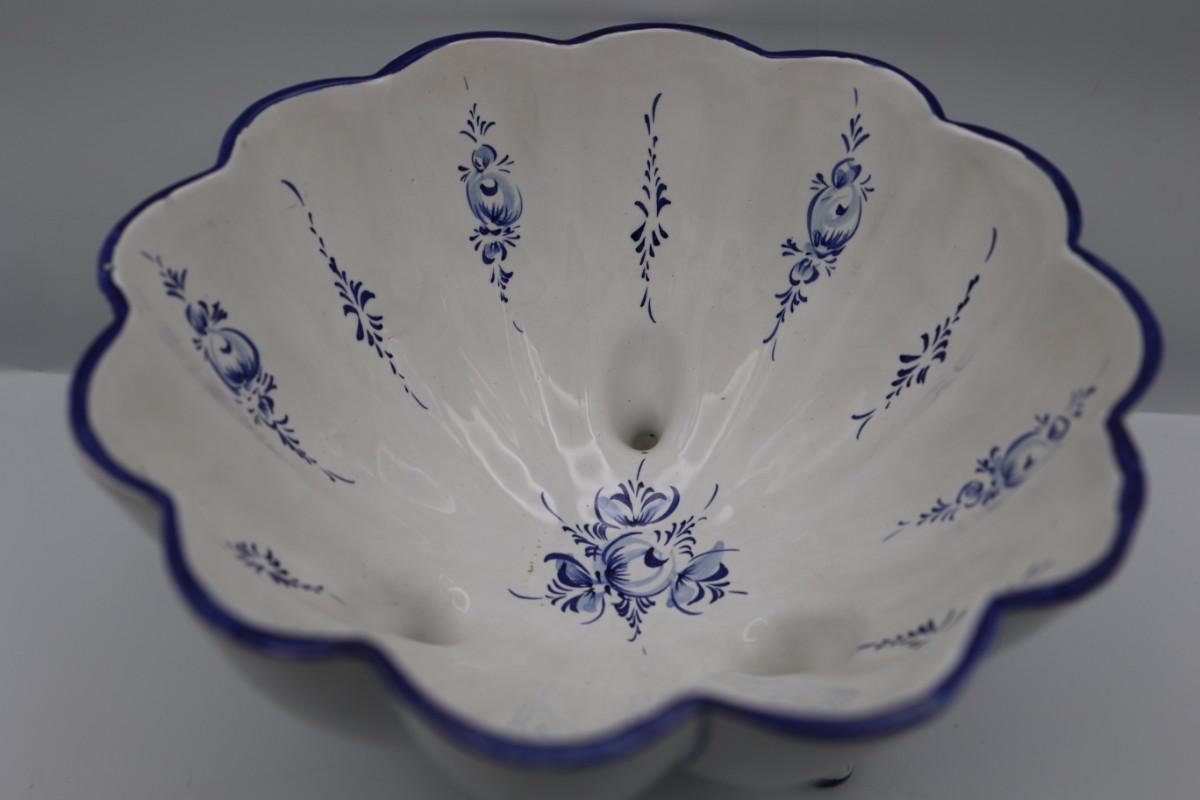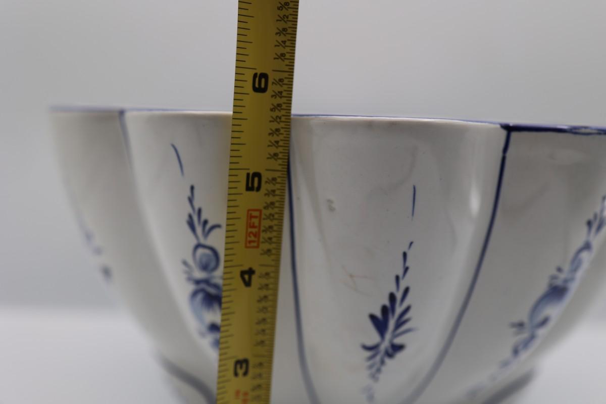 Hand Painted Portuguese Blue White Ceramic Footed Bowl