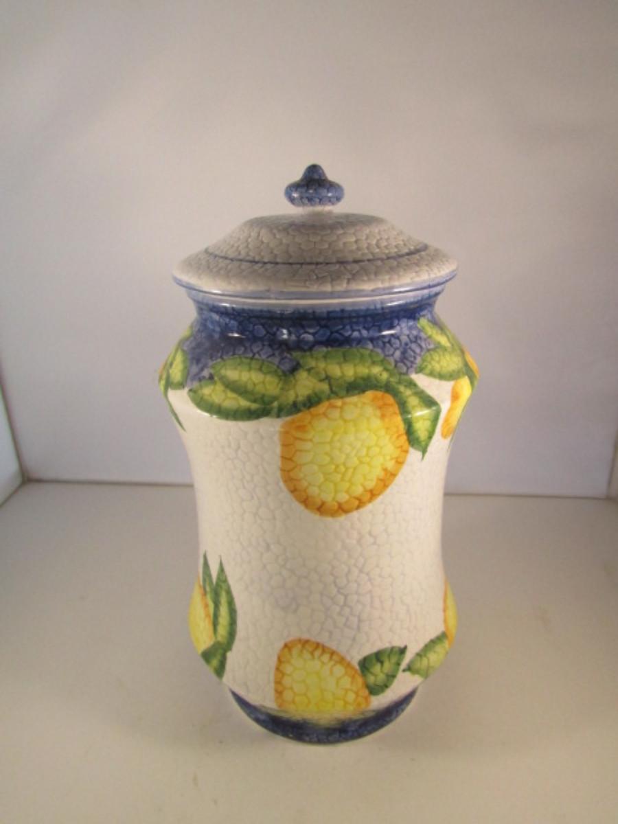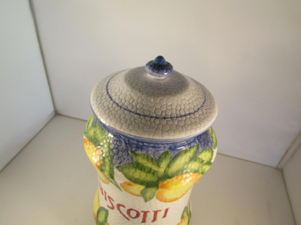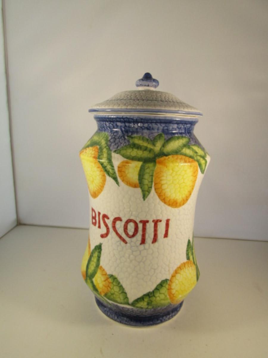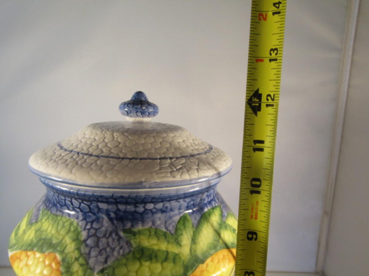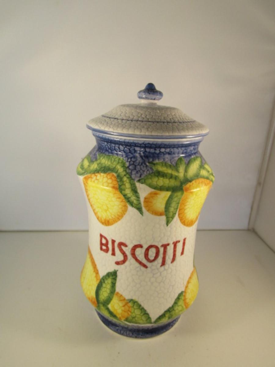 Hand Painted Pottery Biscotti Jar with Lid- Approx 12 1/4" Tall