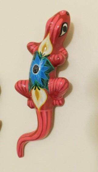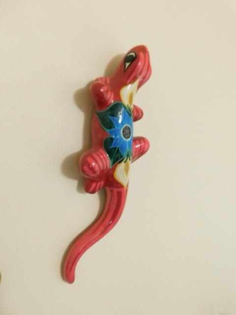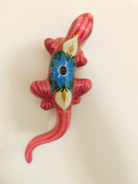 Hand Painted Pottery Salamander Wall Hanging Flower Medallion