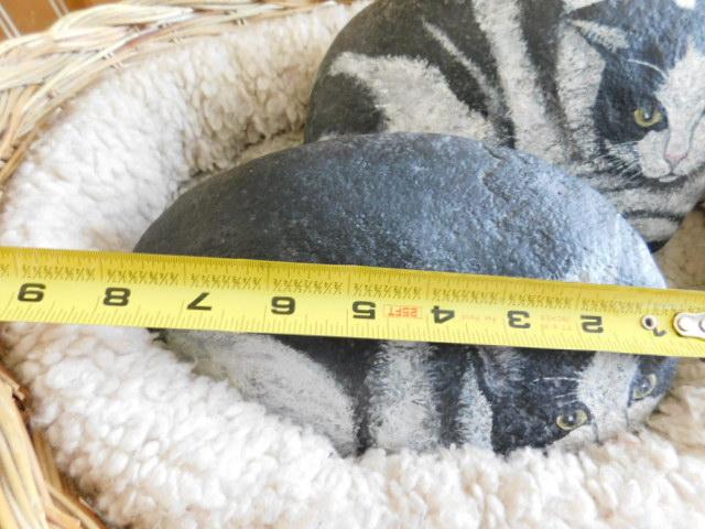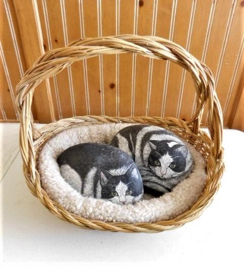 Hand Painted Rock 'Cats' in a Basket- Each Approx 8" Wide