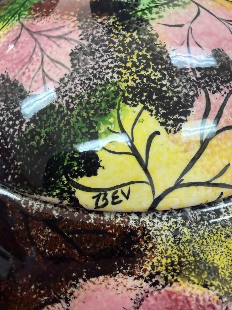 Hand Painted Round Ginger Jar Signed and dated Beverly Ziegler 1974
