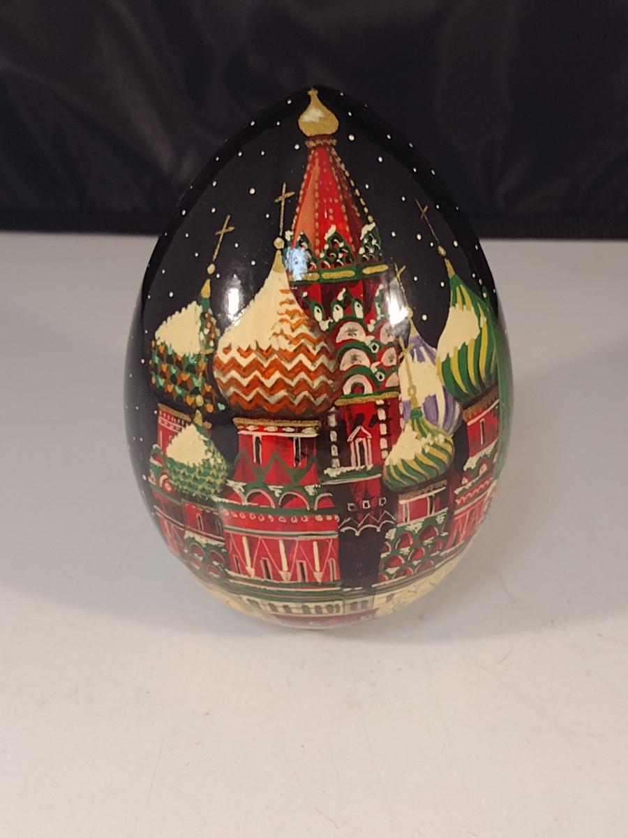 Hand Painted Russian Lacquer Egg- Approx 5 1/4" Tall