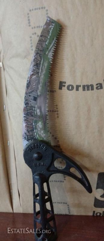 2 saw blades. We were surprised to find a tree pruner had been painted!