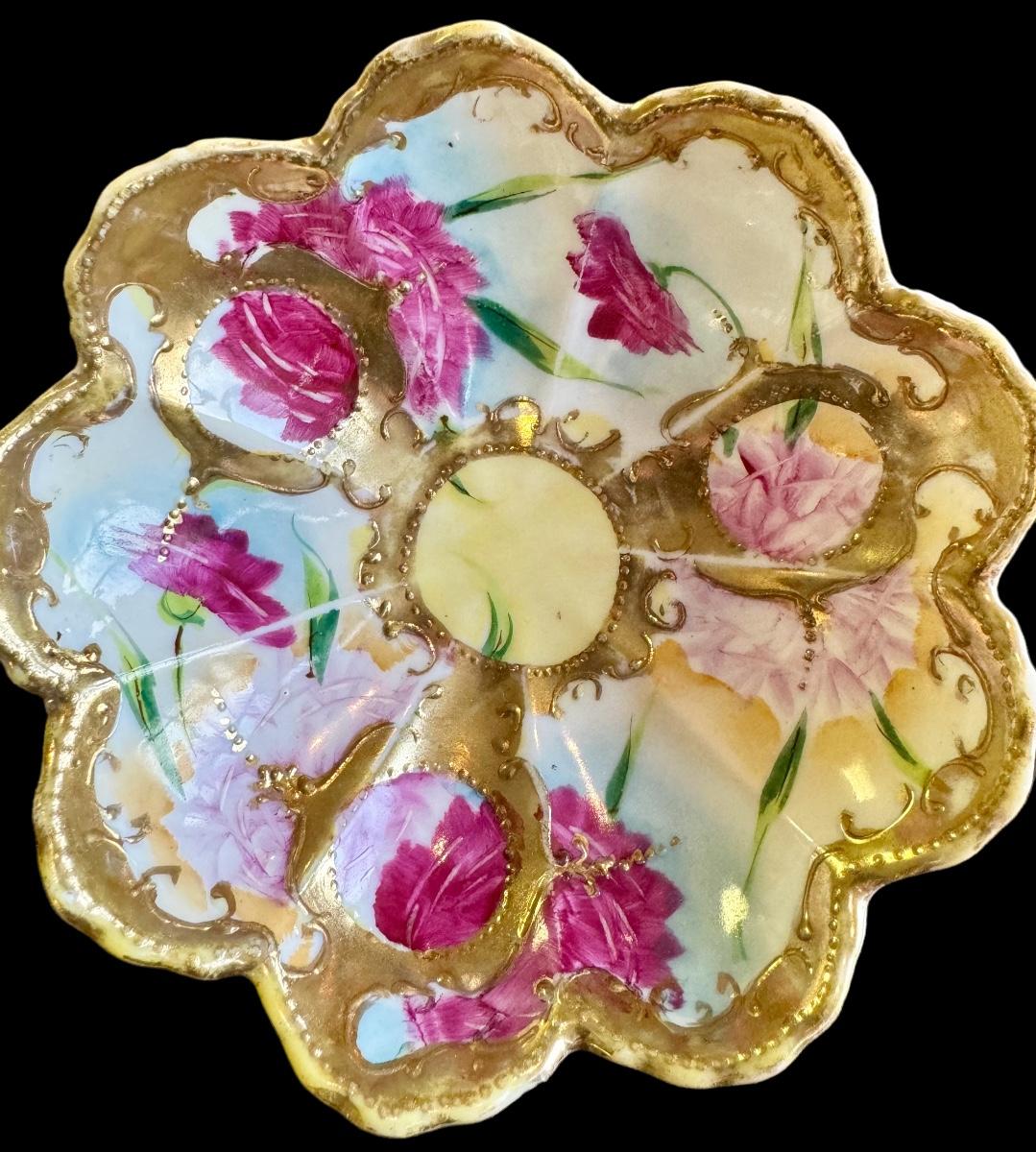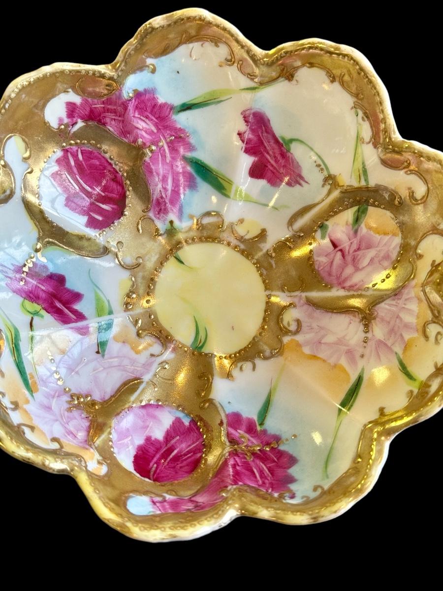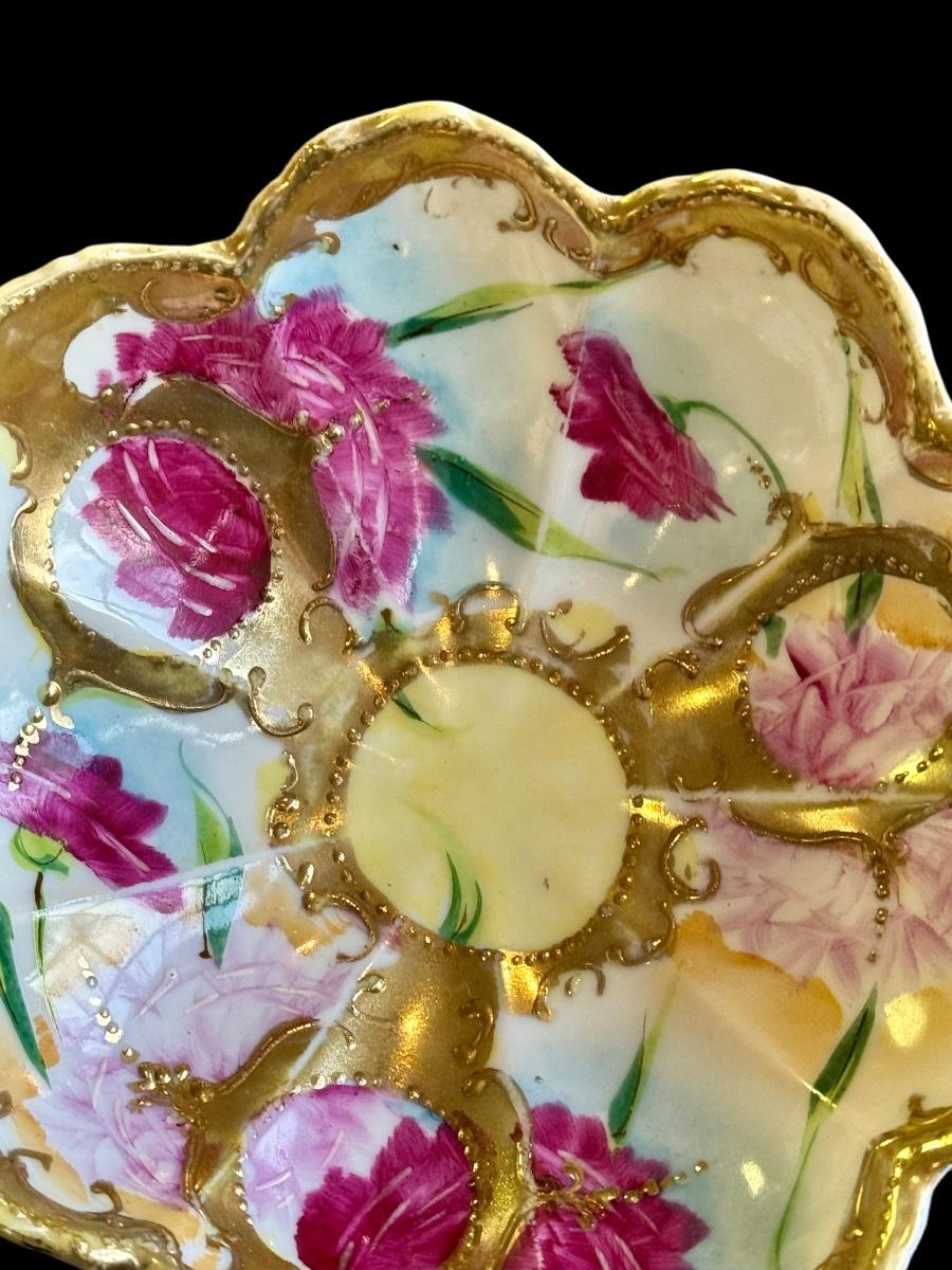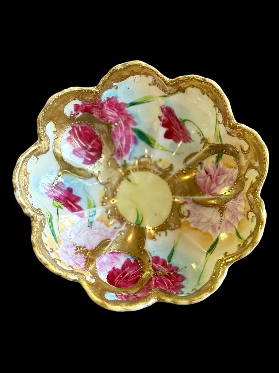 Beautiful vintage hand painted & guilded bowl. tulip shaped, rich colors.