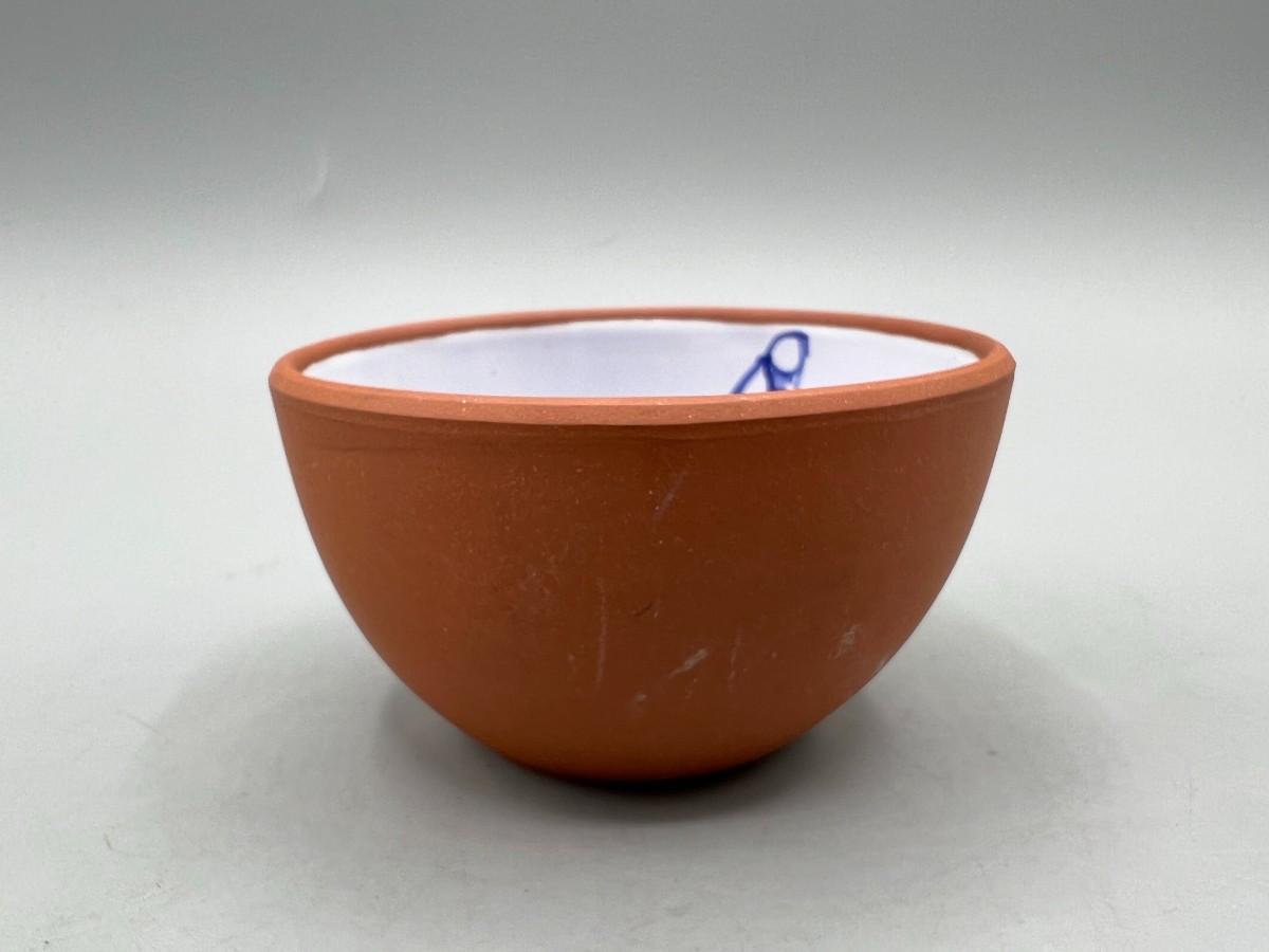 Hand Painted Small Terra Cotta Bowl Blue Grapevine Pattern Portugal. In good condition. Teacup size.