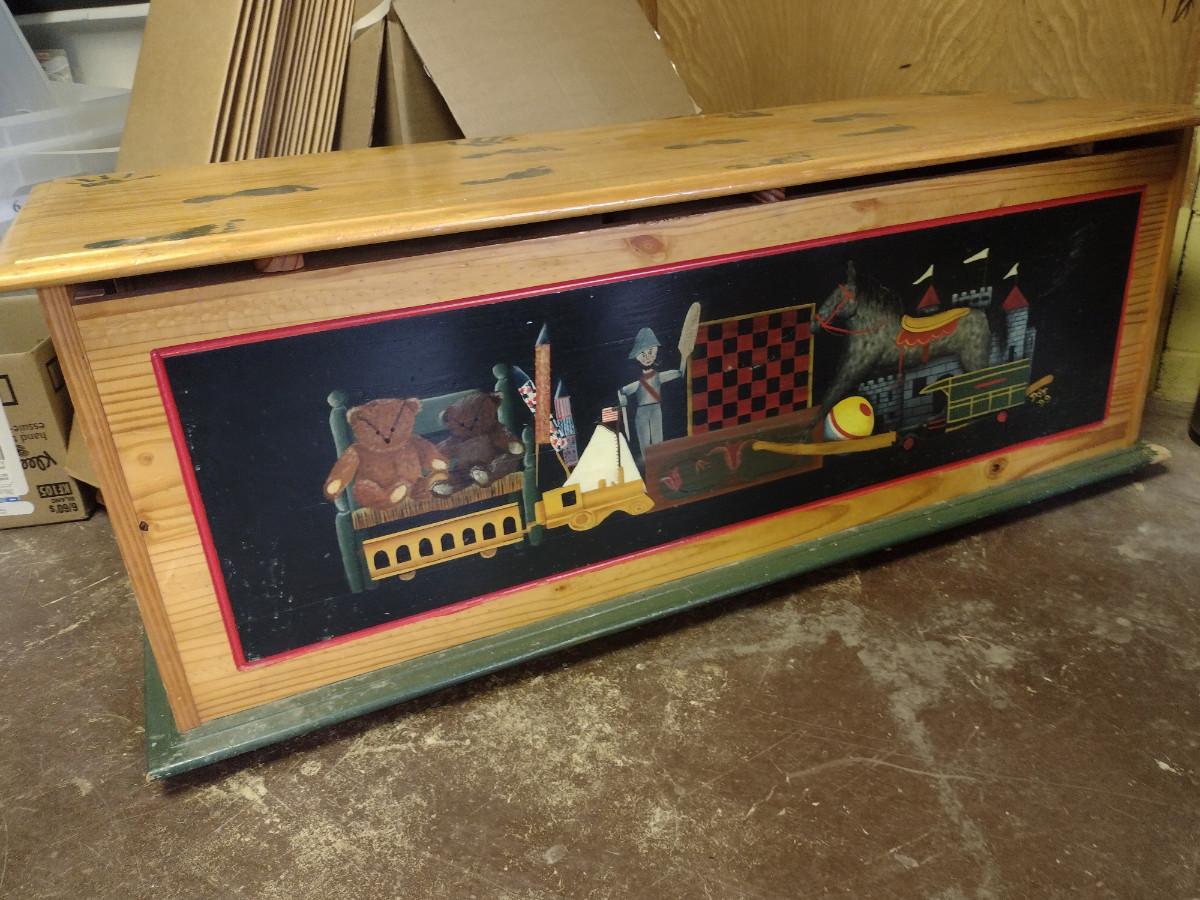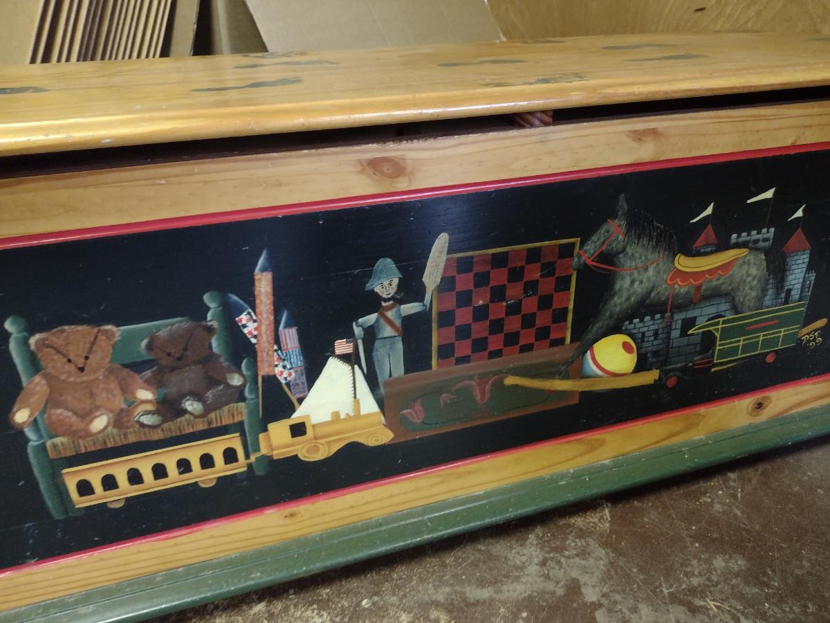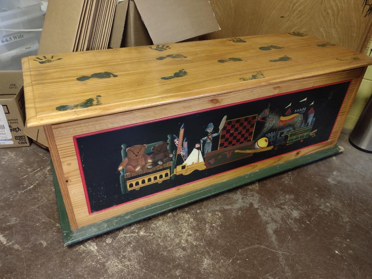 Hand Painted Solid Wood Toy Chest- Approx 49" x 17 1/2" x 18" Tall