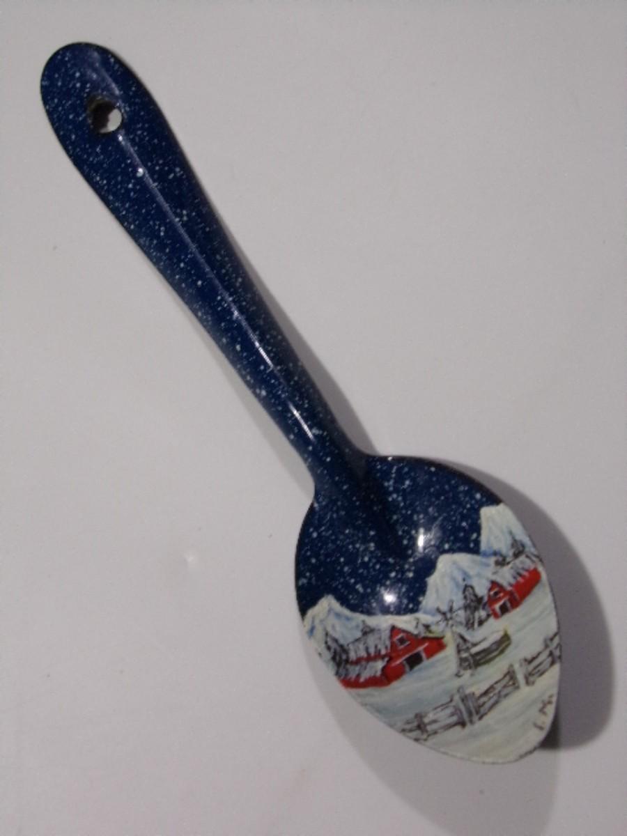 Enameled graniteware hand painted spoon tree ornament