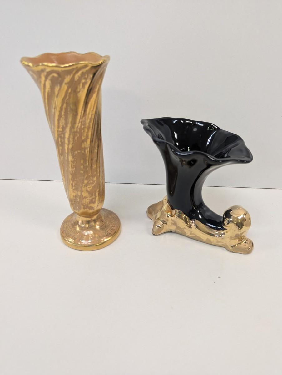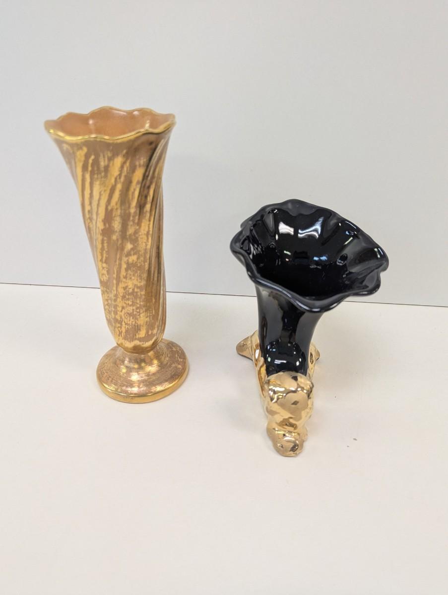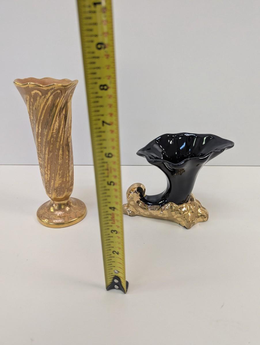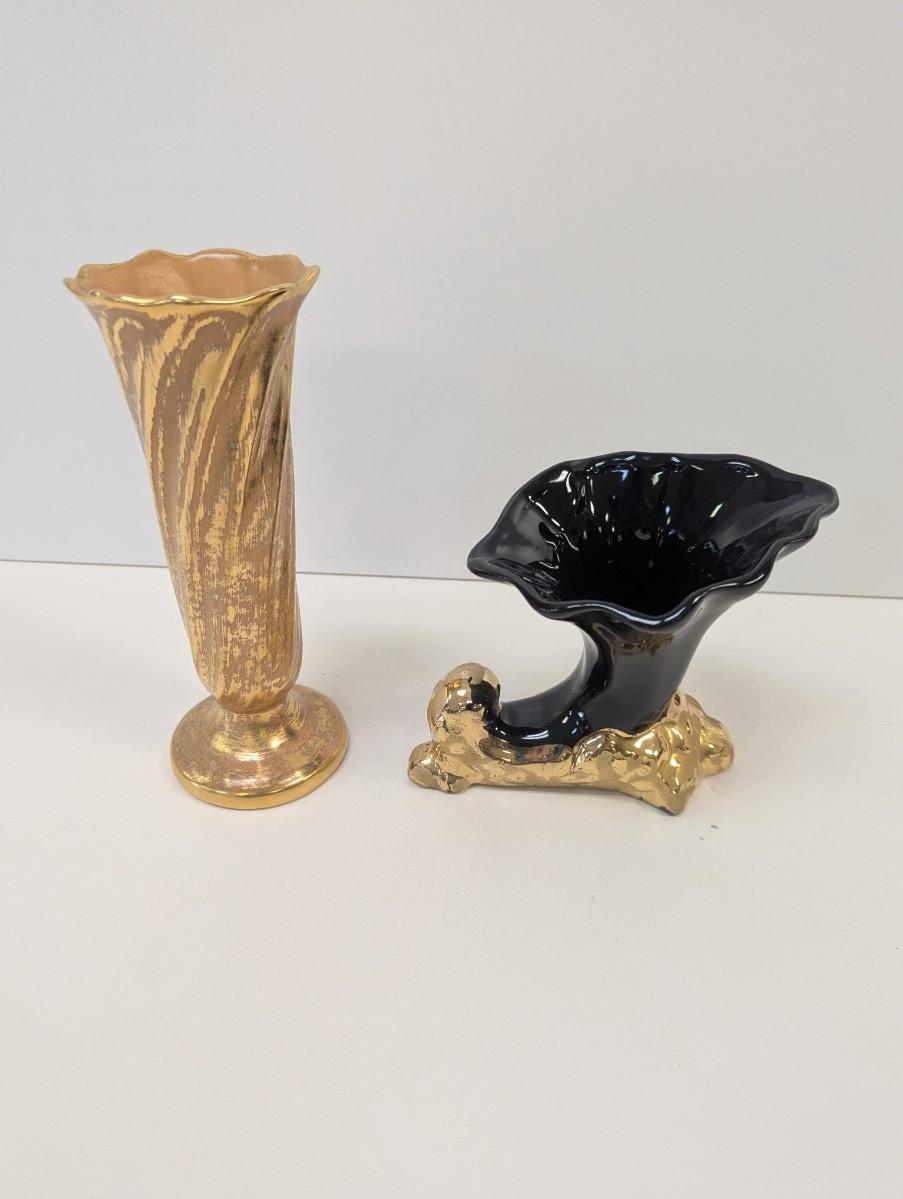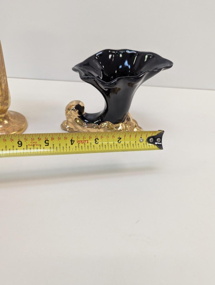 Hand Painted Stangl Vase Granada Gold Savoy China 24k Gold Trim Black Vase