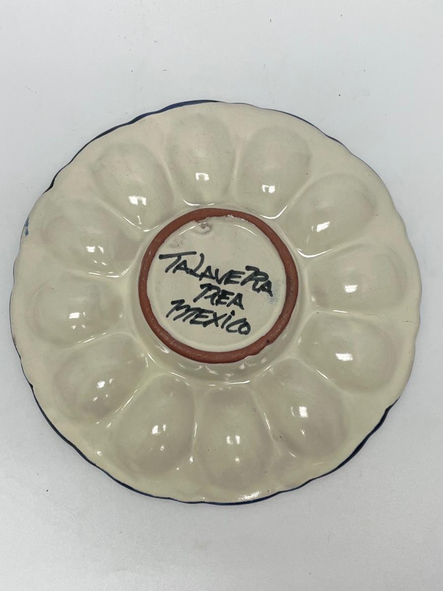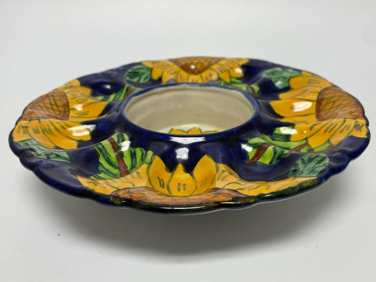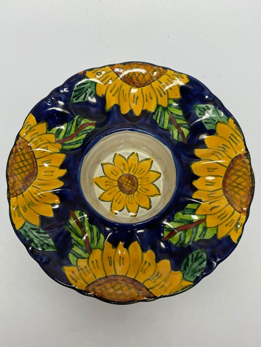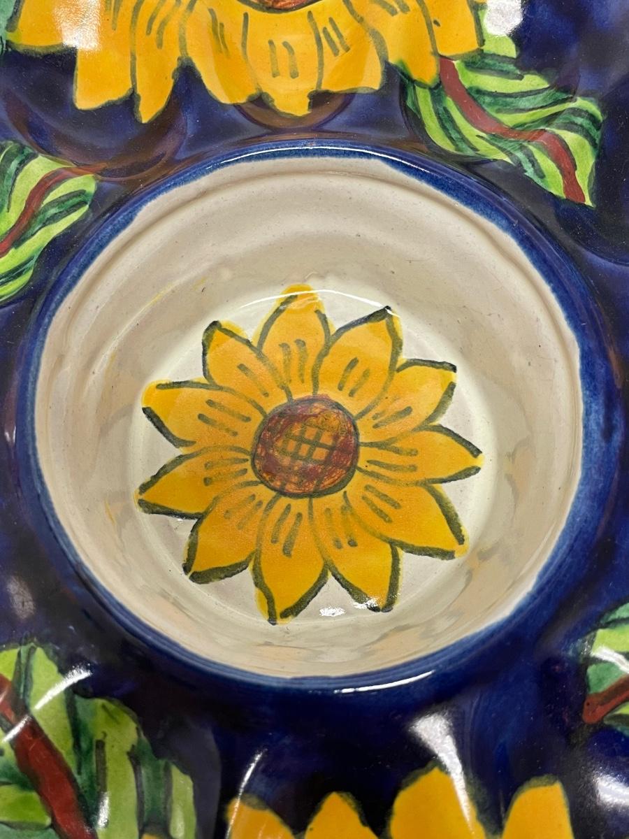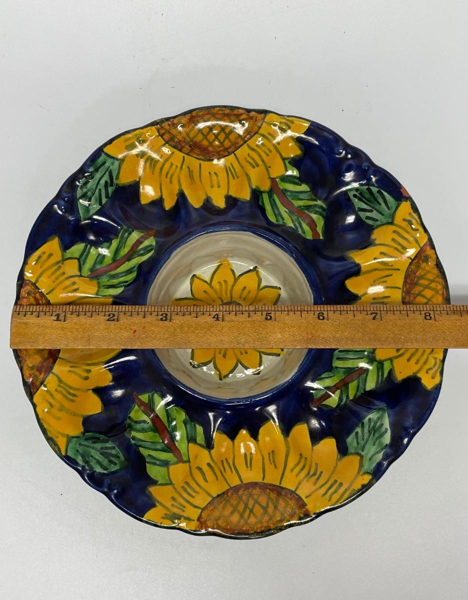 Vintage Talavera Majolica Hand Painted Sunflower Deviled Egg Plate Serving Dish Bowl