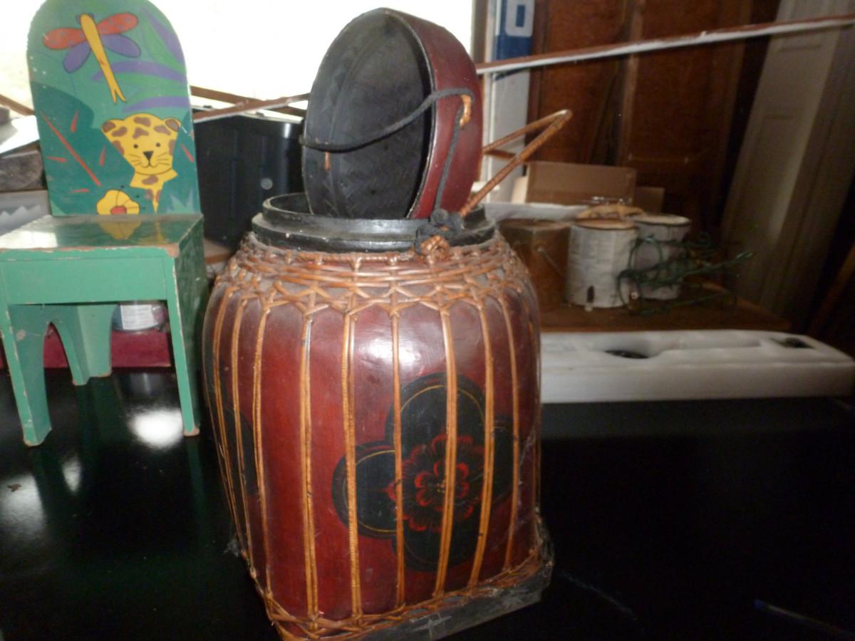 Hand Painted Thai Rice Basket with Lid