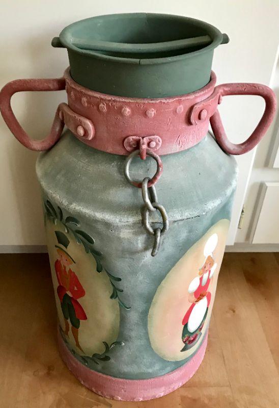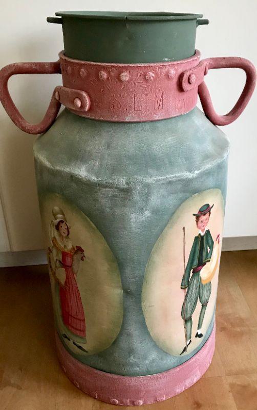 Hand Painted Tole Style Milk Can By Sylviane Giacoletto