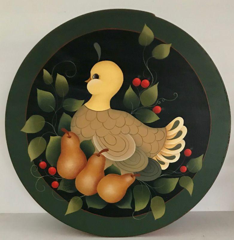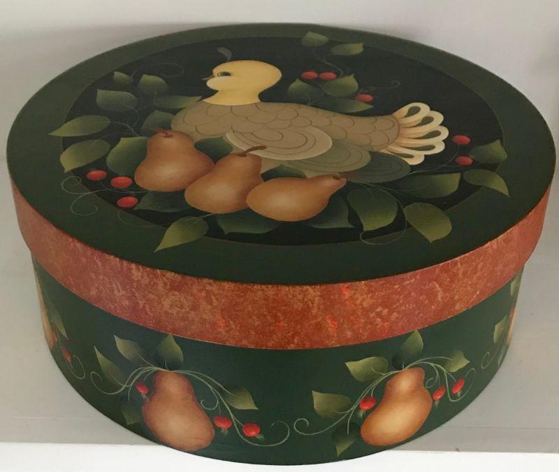 Hand Painted Tole Style Round Hat Box By Sylviane Giacoletto