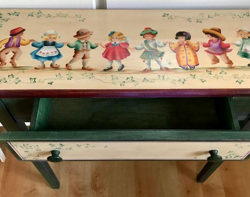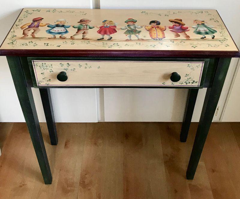 Hand Painted Tole Style Table With Drawer By Sylviane Giacoletto