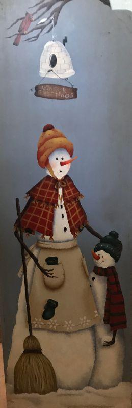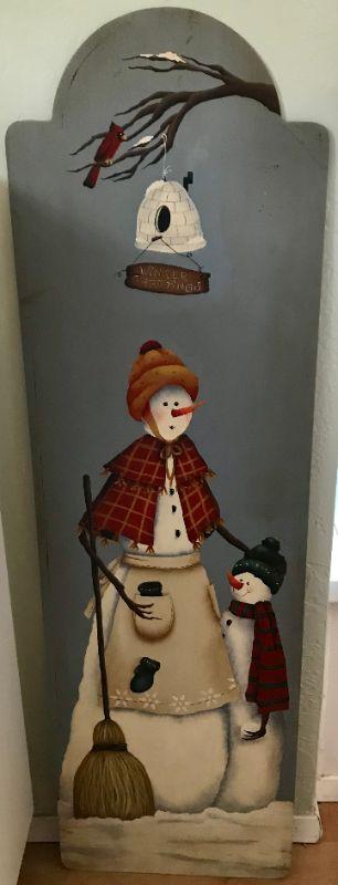 Hand Painted Tole Style Winter Greetings Wood Panel By Sylviane Giacoletto