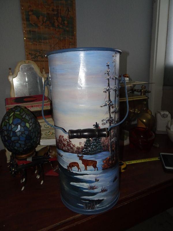 Hand Painted Umbrella Bucket, Folk Art - LOCAL PICKUP no shipping