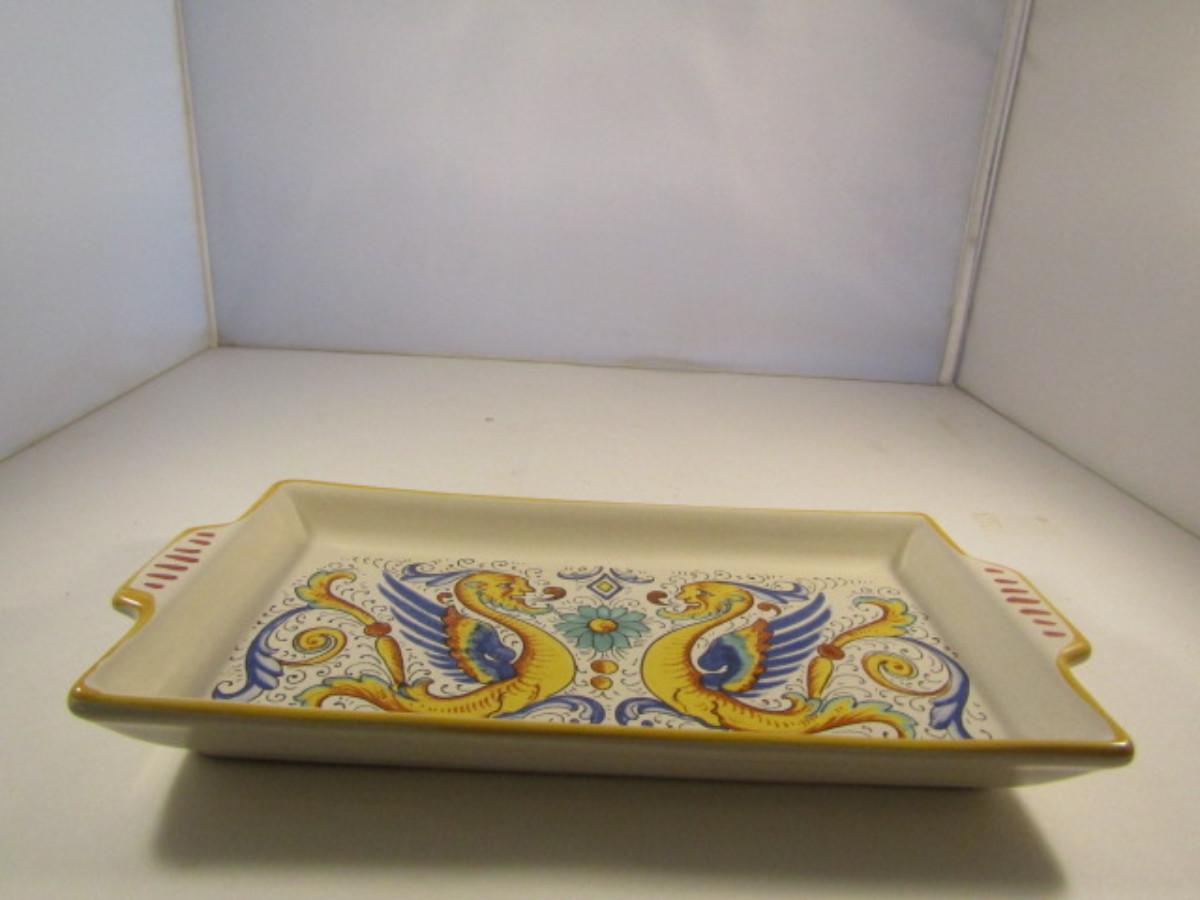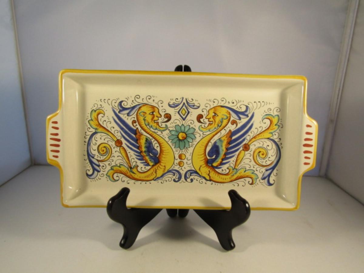 Hand Painted Vintage Italian Deruta Ceramic Pottery Handled Serving Platter 12"