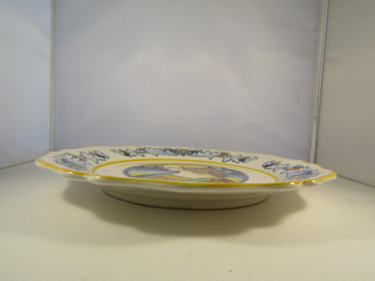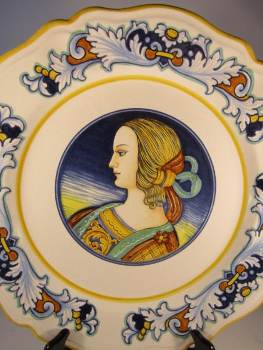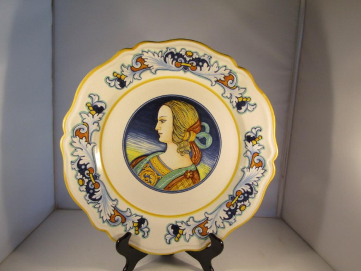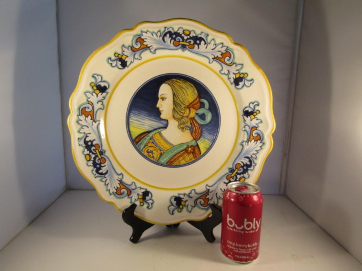 Hand Painted Vintage Italian Deruta Ceramic Pottery Cameo Center Charger 15"