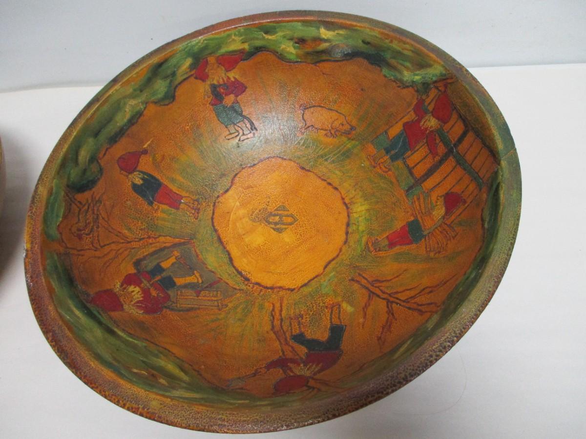 Hand Painted Vintage Munising Primitive Wooden Bowl