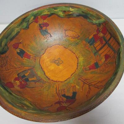 Hand Painted Vintage Munising Primitive Wooden Bowl